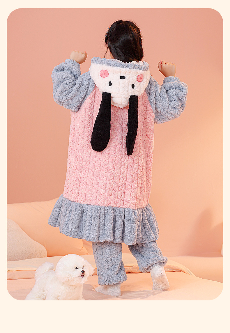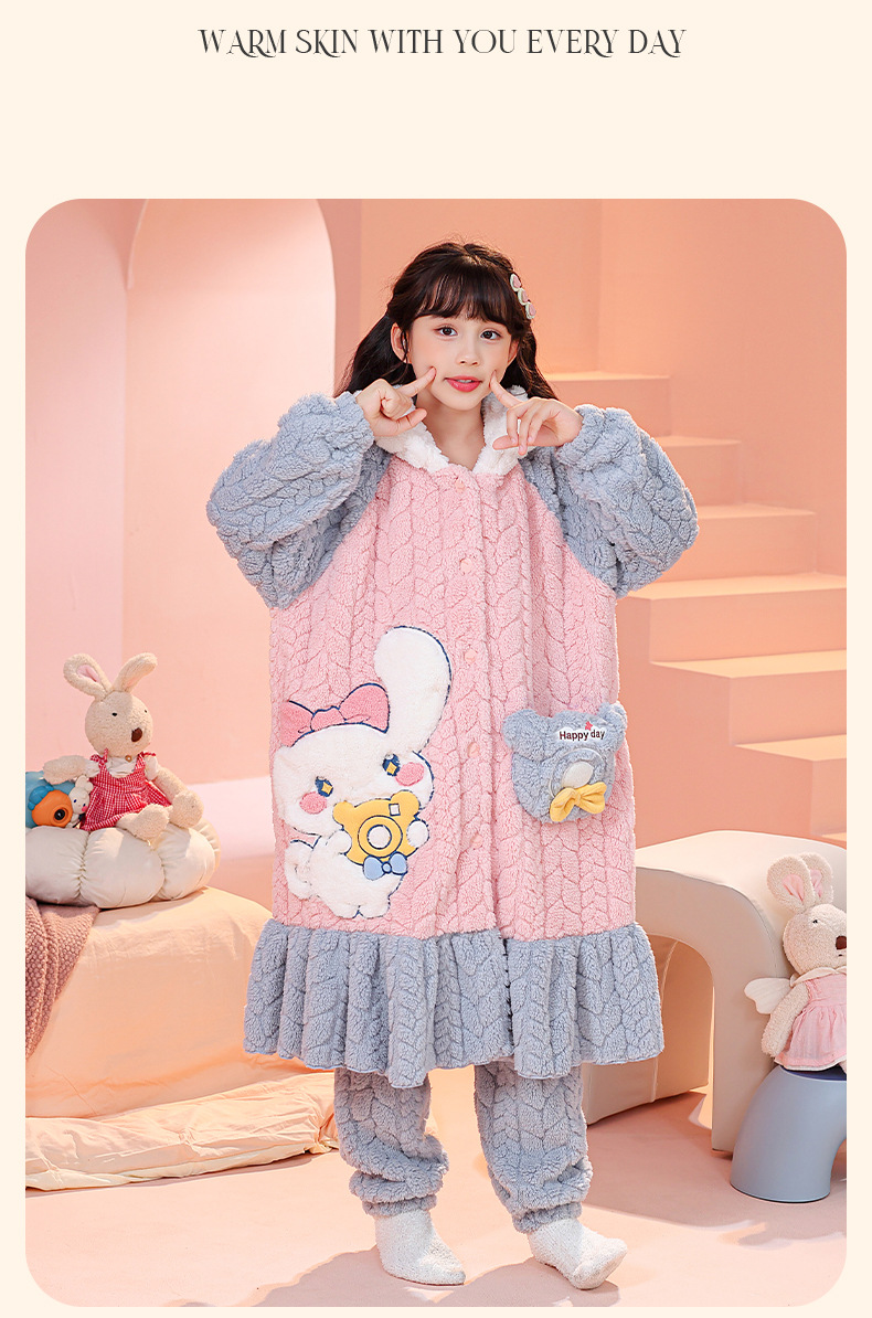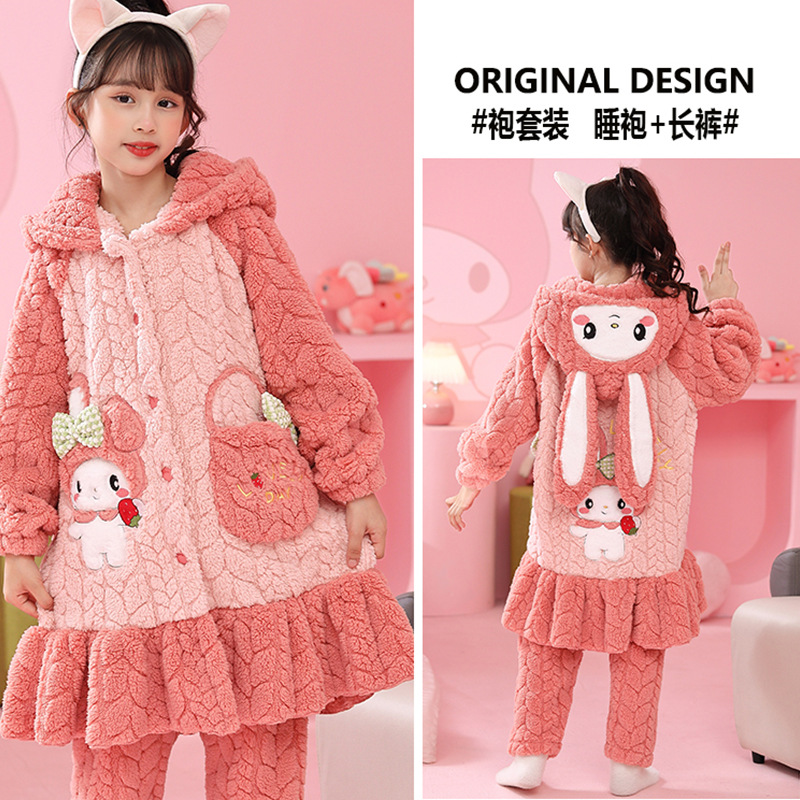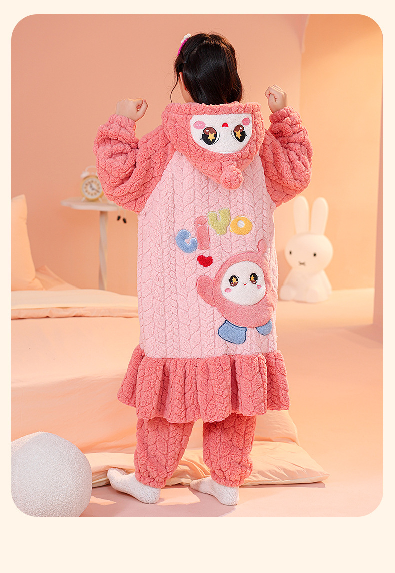 소녀 잠옷 가을과 겨울 기모 두꺼운 산호 양털 어린이 잠옷 긴 만화 귀여운 소녀 세트 겨울 스타일