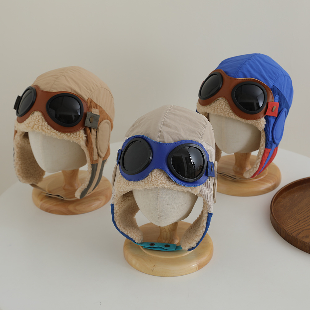 따뜻한 소년의 파일럿 모자 귀 보호 방풍 모자를 기모 선글라스를 곁들인 어린이 레이 펑 모자 겨울스토어 가기