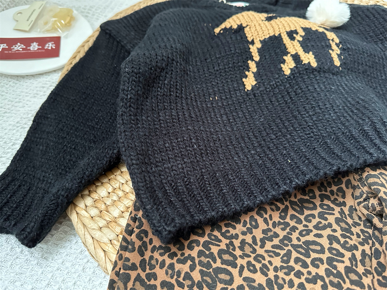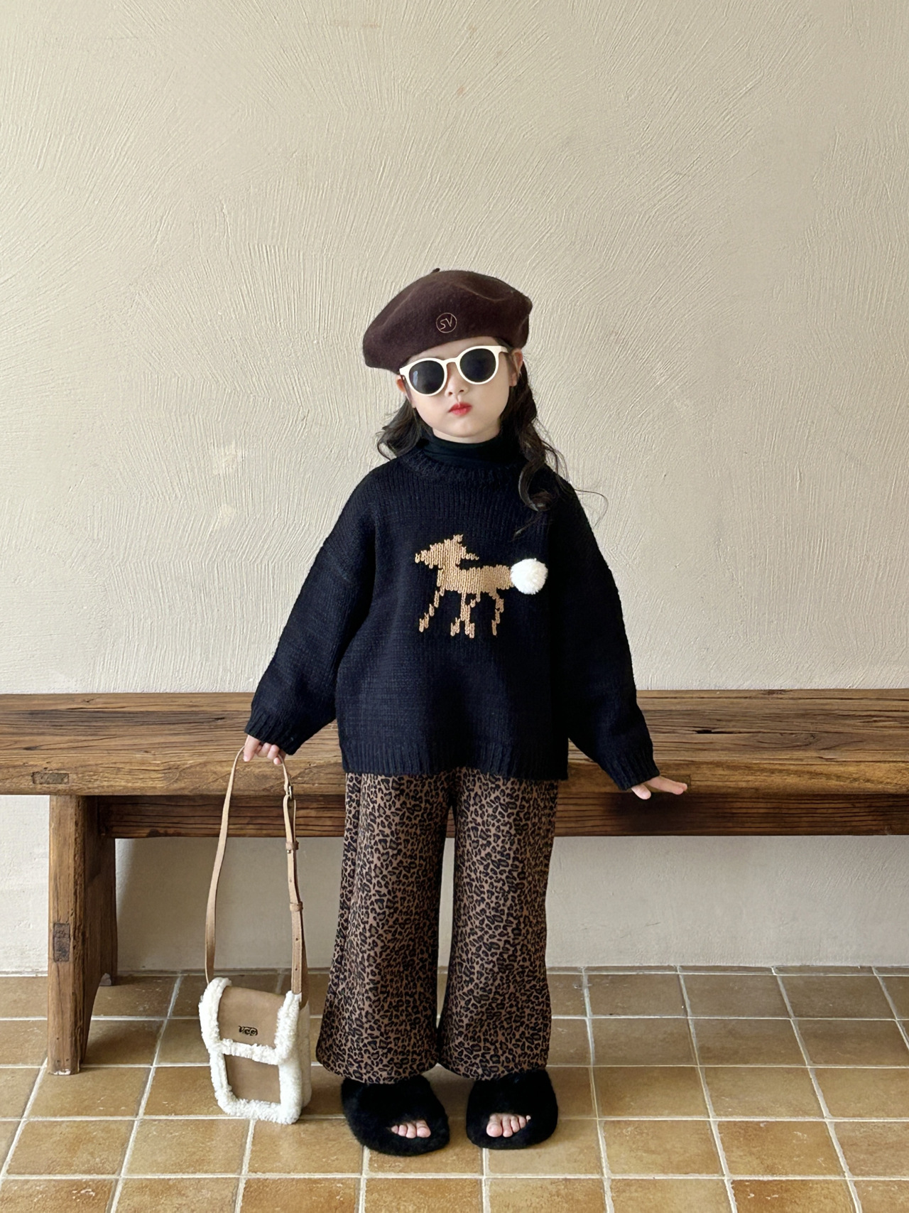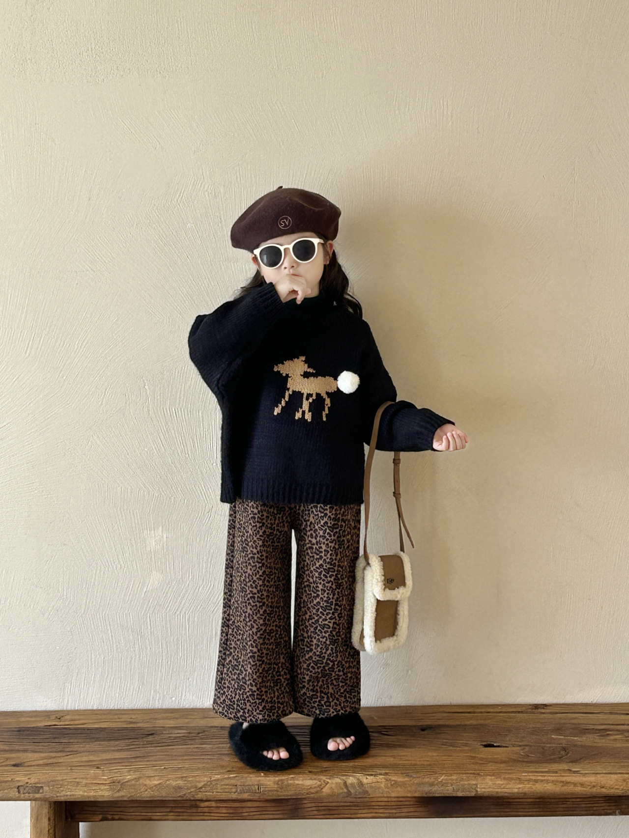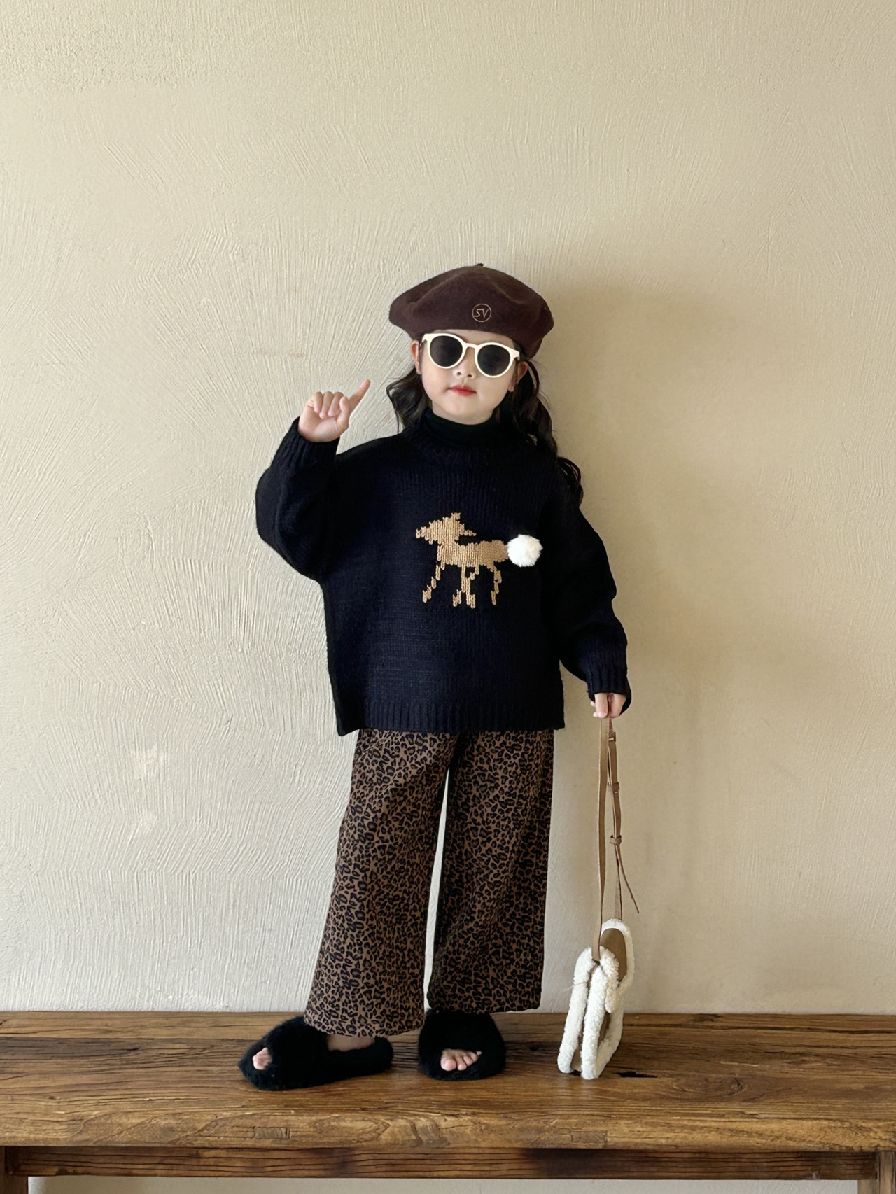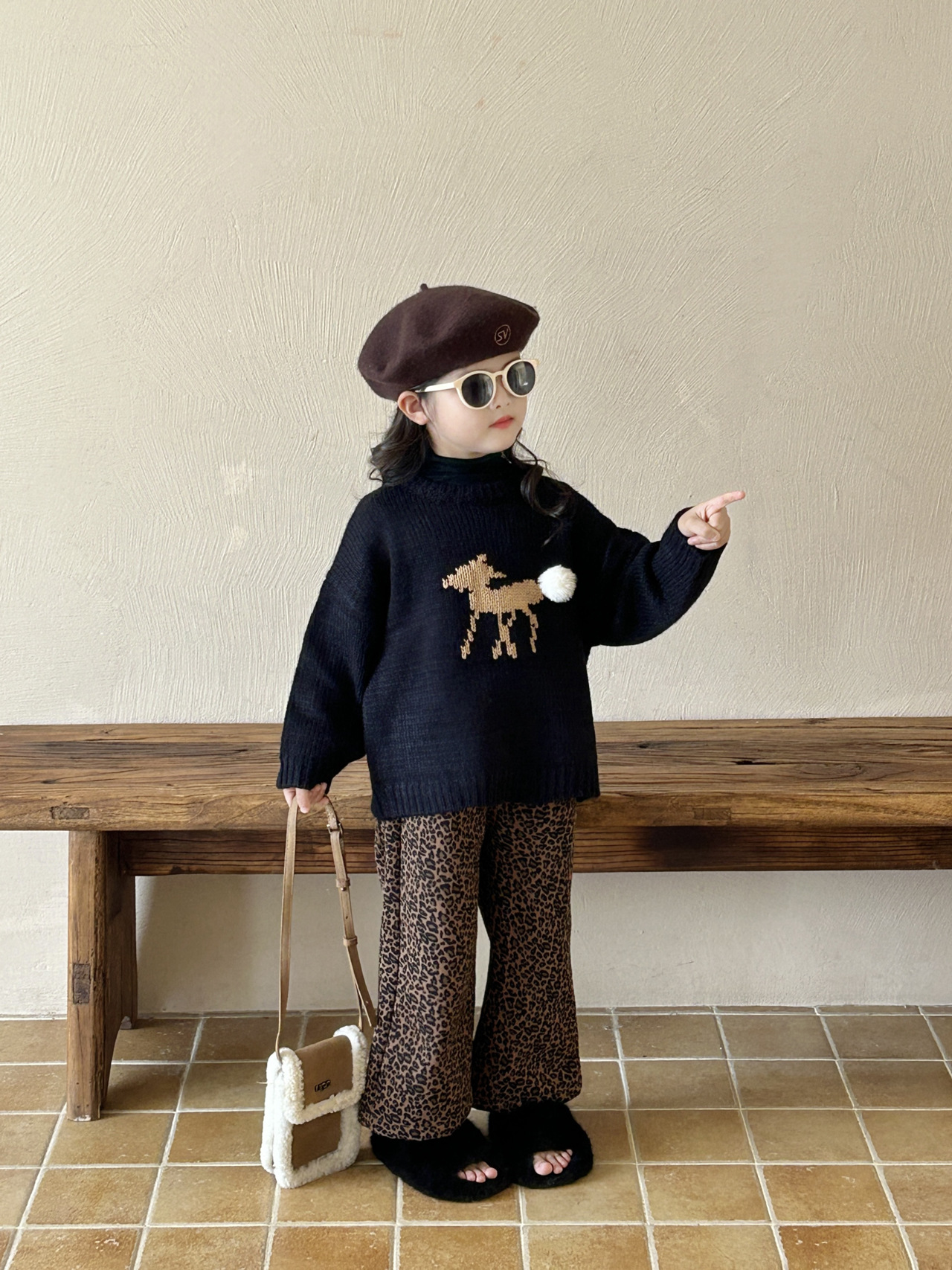 어린이 한국식 스웨터 2024 가을과 겨울 새 소녀 아기 만화 새끼 양모 탑 기모 레오파드 무늬 바지