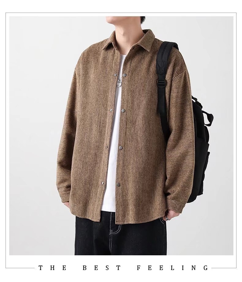 크로스 보더 재킷 트렌디 한 홍콩 스타일 봄 캐주얼 옷 긴 소매 셔츠 재킷 남자의 봄과 가을 느슨한 옷깃