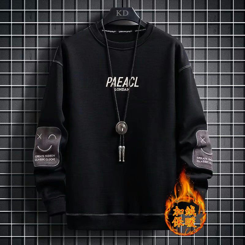 가을과 겨울 십대 둥근 목 기모 스웨트 셔츠 남자의 큰 아이 톱 소년 학생 느슨한 인쇄 긴 소매 티셔츠스토어 가기