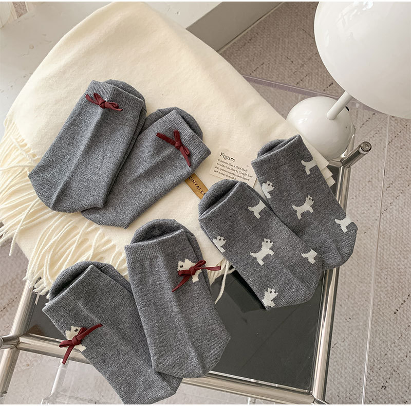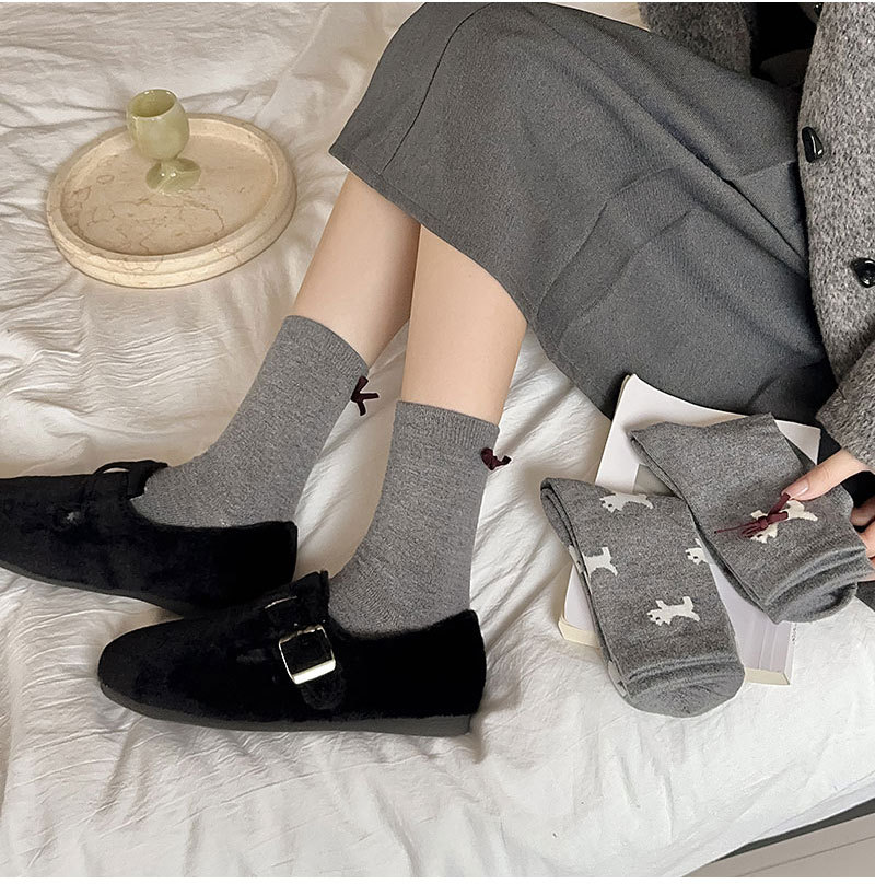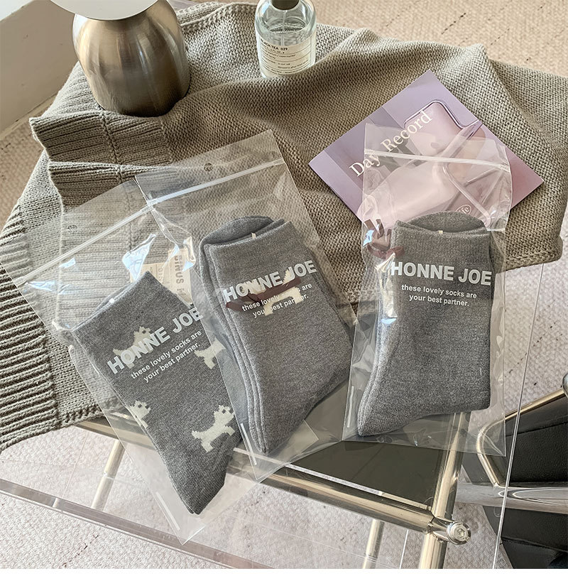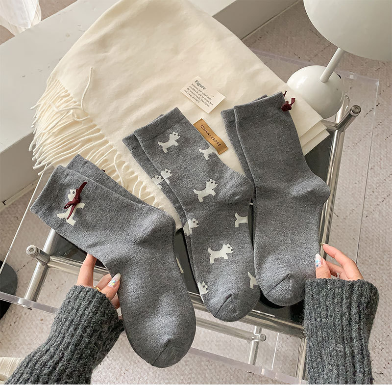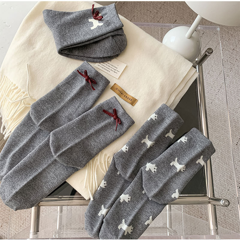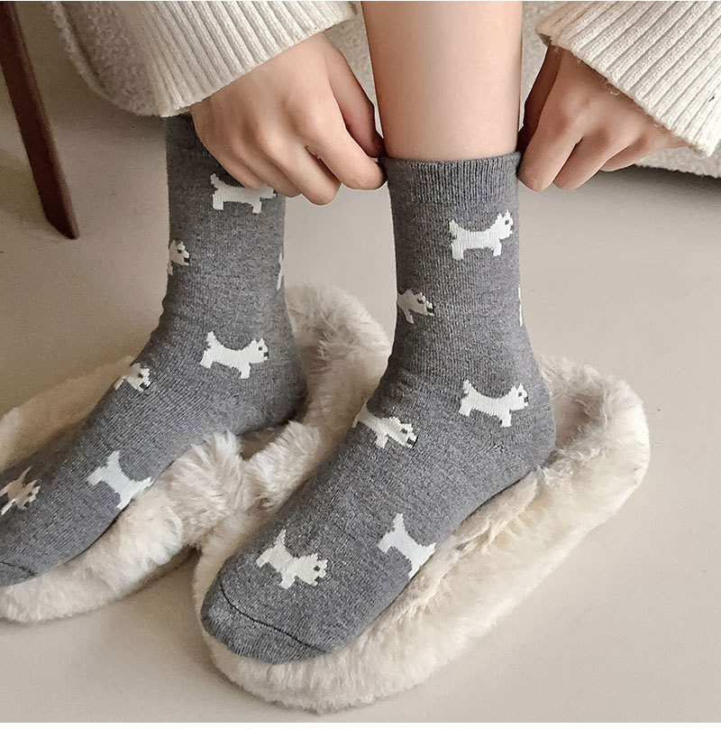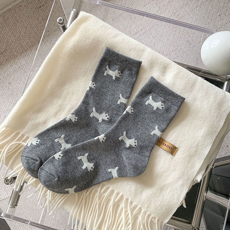 회색 양모 양말 여성의 중순 가을과 겨울 두꺼운 기모 따뜻한 귀여운 강아지 활 독특한 유행 양말스토어 가기
