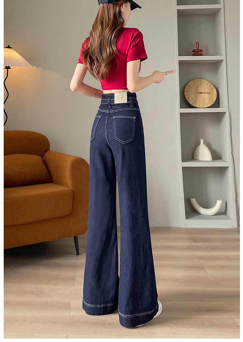 아이보리 데님 넓은 다리 바지 여자 넓은 다리 긴 다리 2024 겨울 새로운 높은 허리 배 덮고있는 슬림 바지