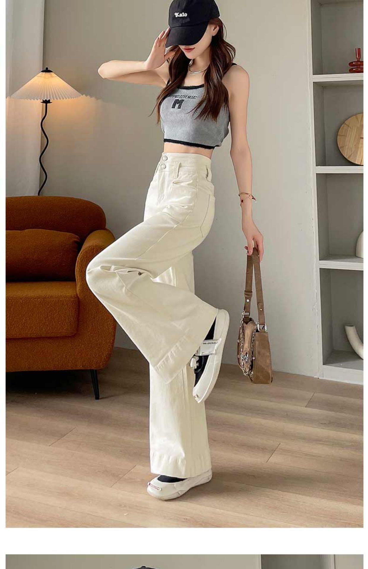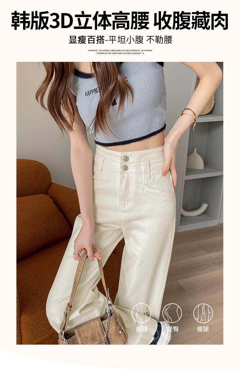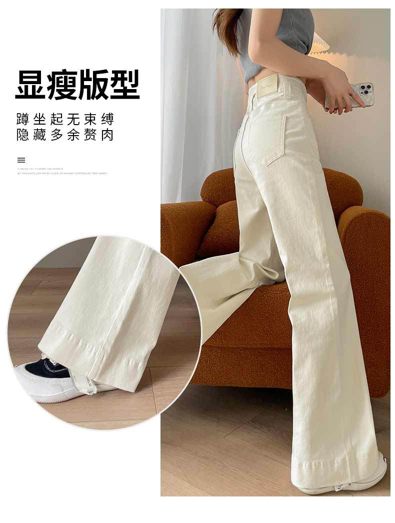 아이보리 데님 넓은 다리 바지 여자 넓은 다리 긴 다리 2024 겨울 새로운 높은 허리 배 덮고있는 슬림 바지스토어 가기