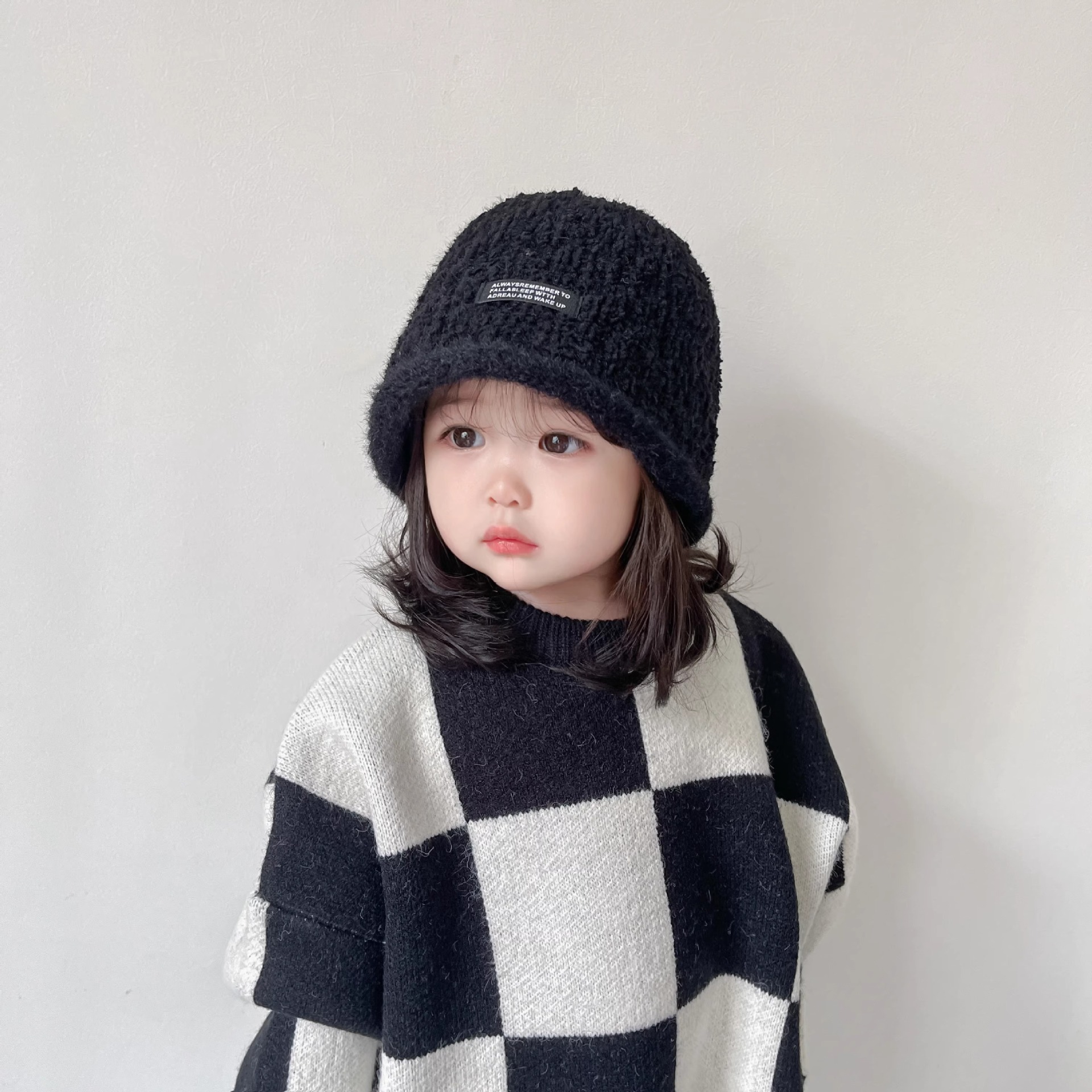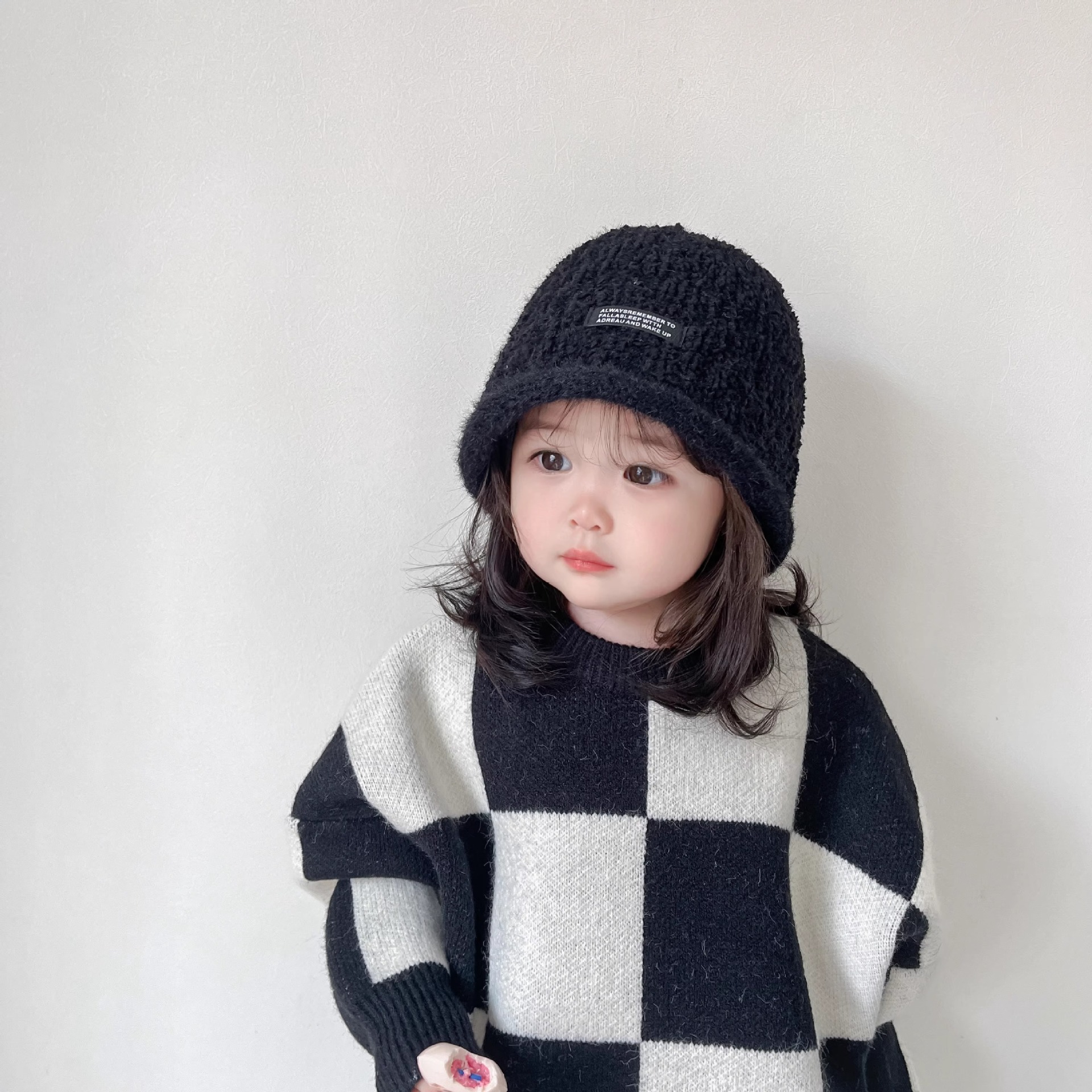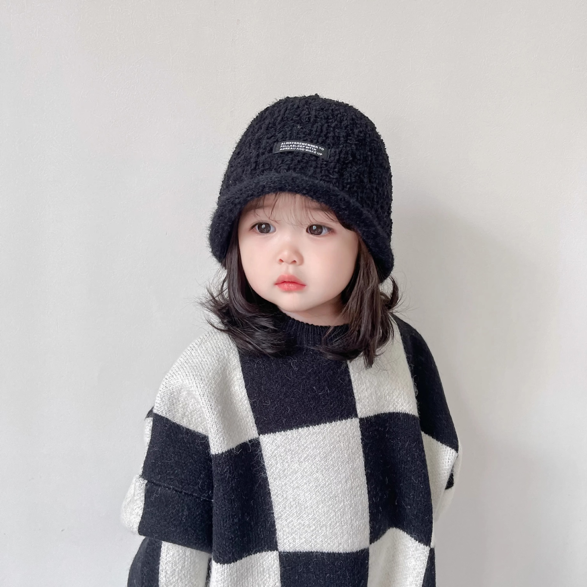 어린이 모자 겨울 새 편지 라벨 울 모자 귀여운 슈퍼 귀여운 트위스트 니트 모자 아기 따뜻한 귀 보호 모자