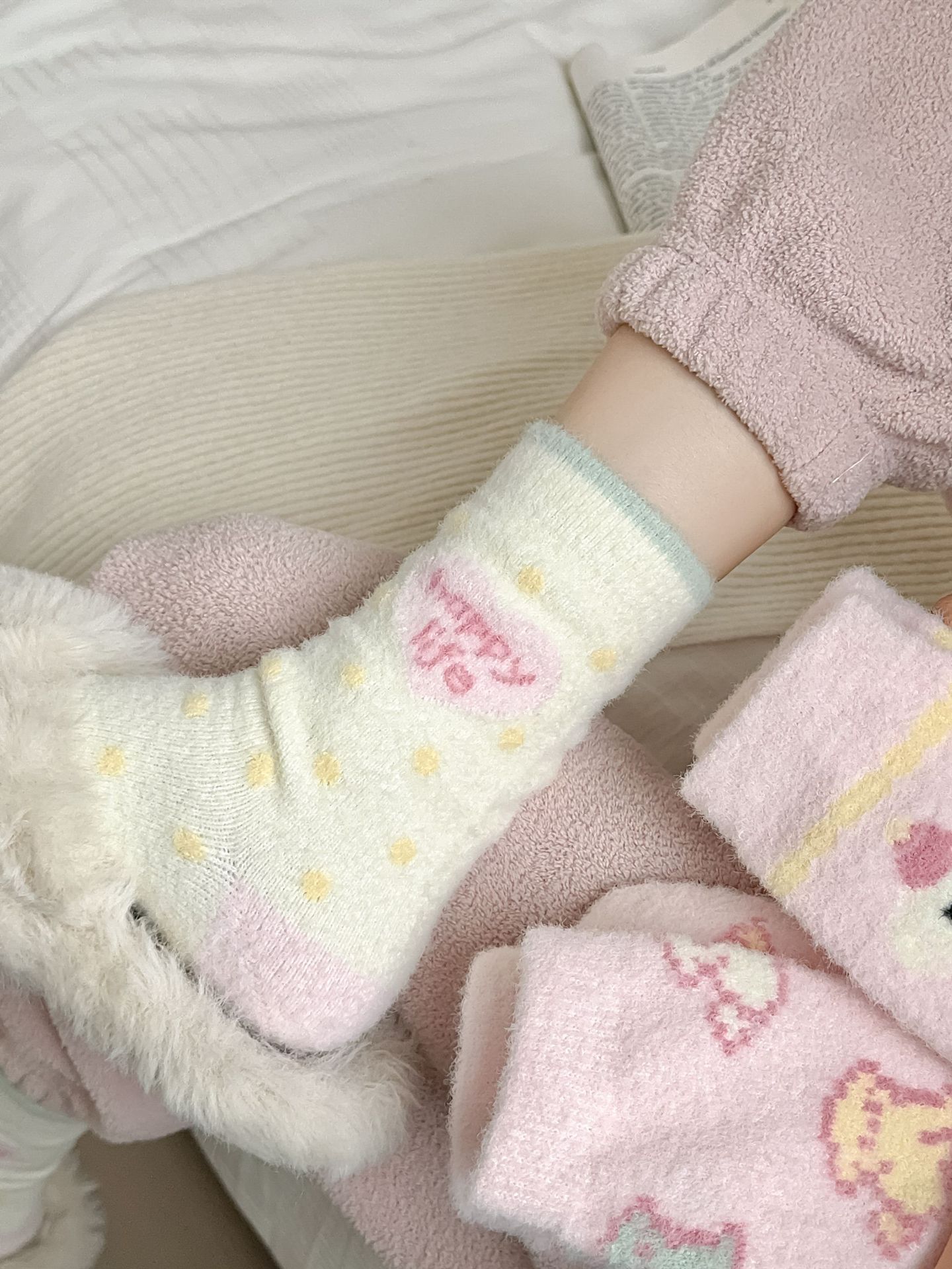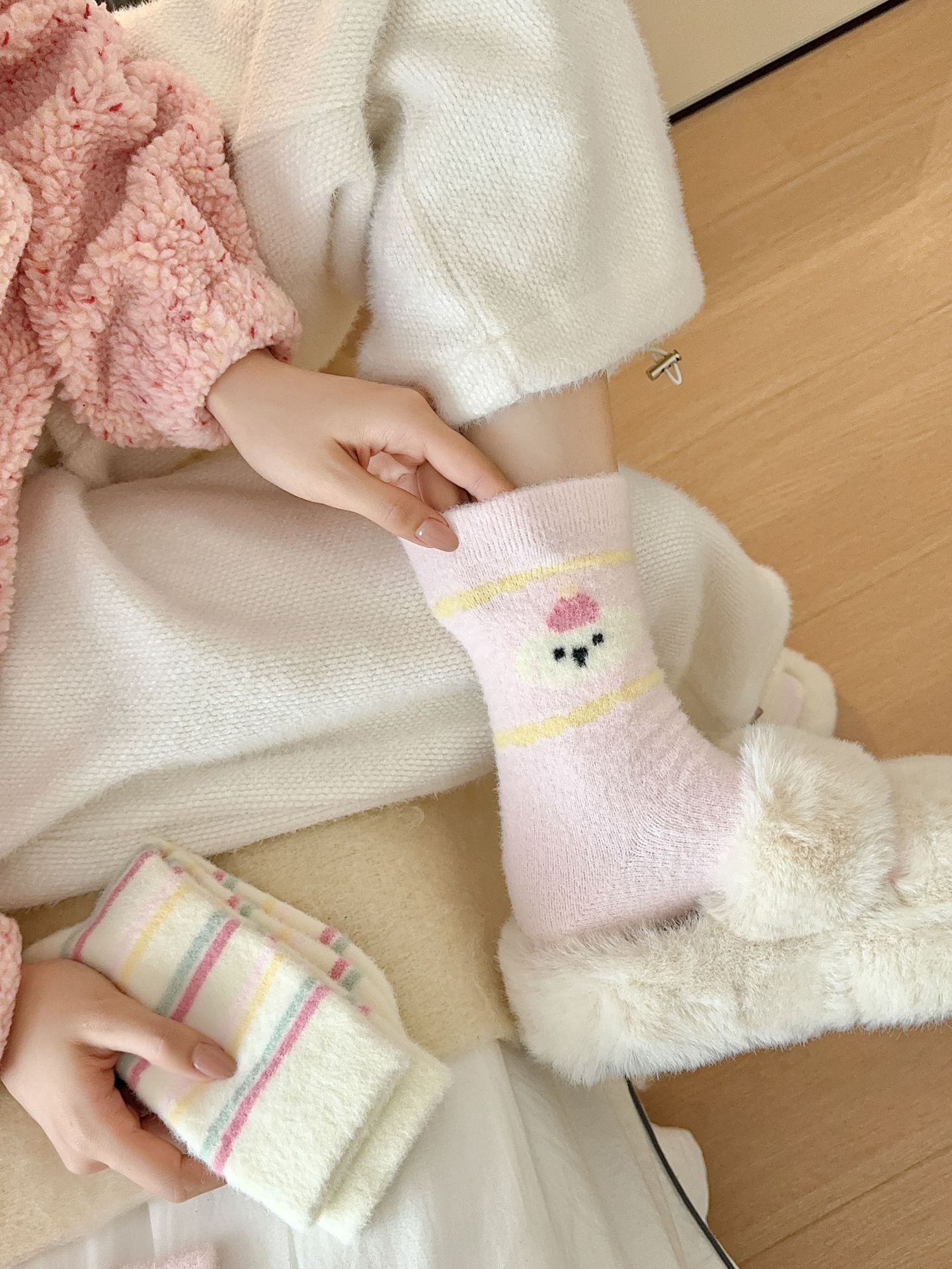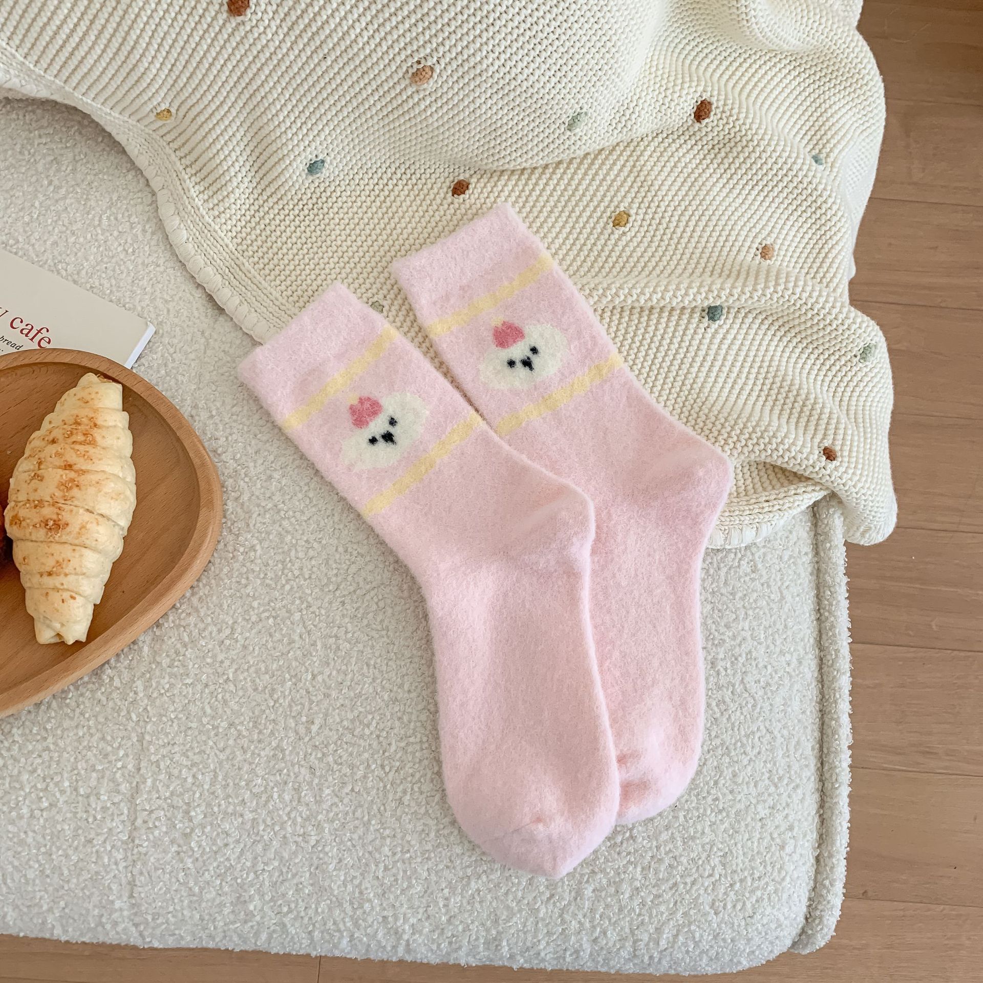 핑크 호주 벨벳 양말 어린이 가을과 겨울 두꺼운 따뜻한 튜브 양말 일본 만화 줄무늬 달콤한 플러시 바닥 양말스토어 가기