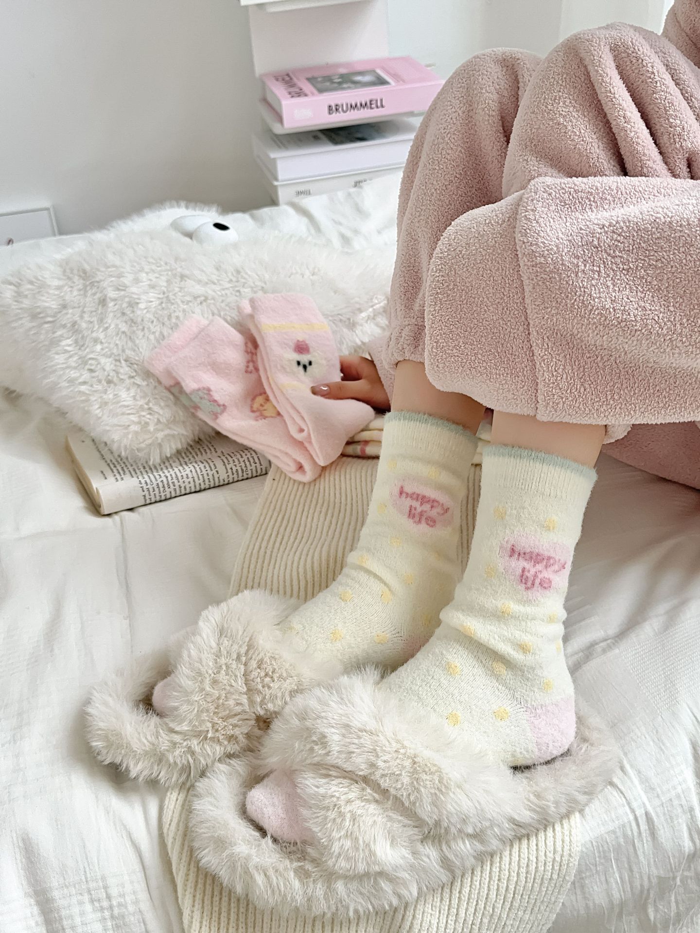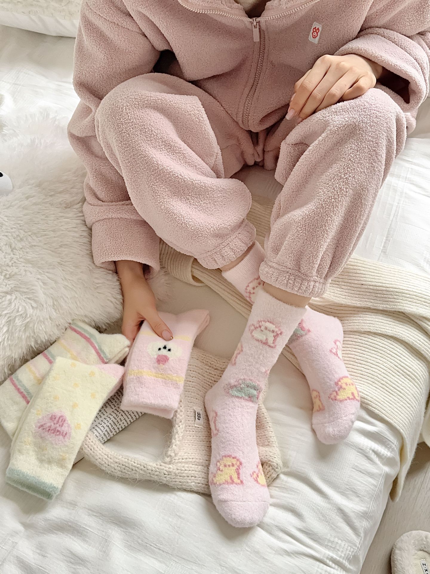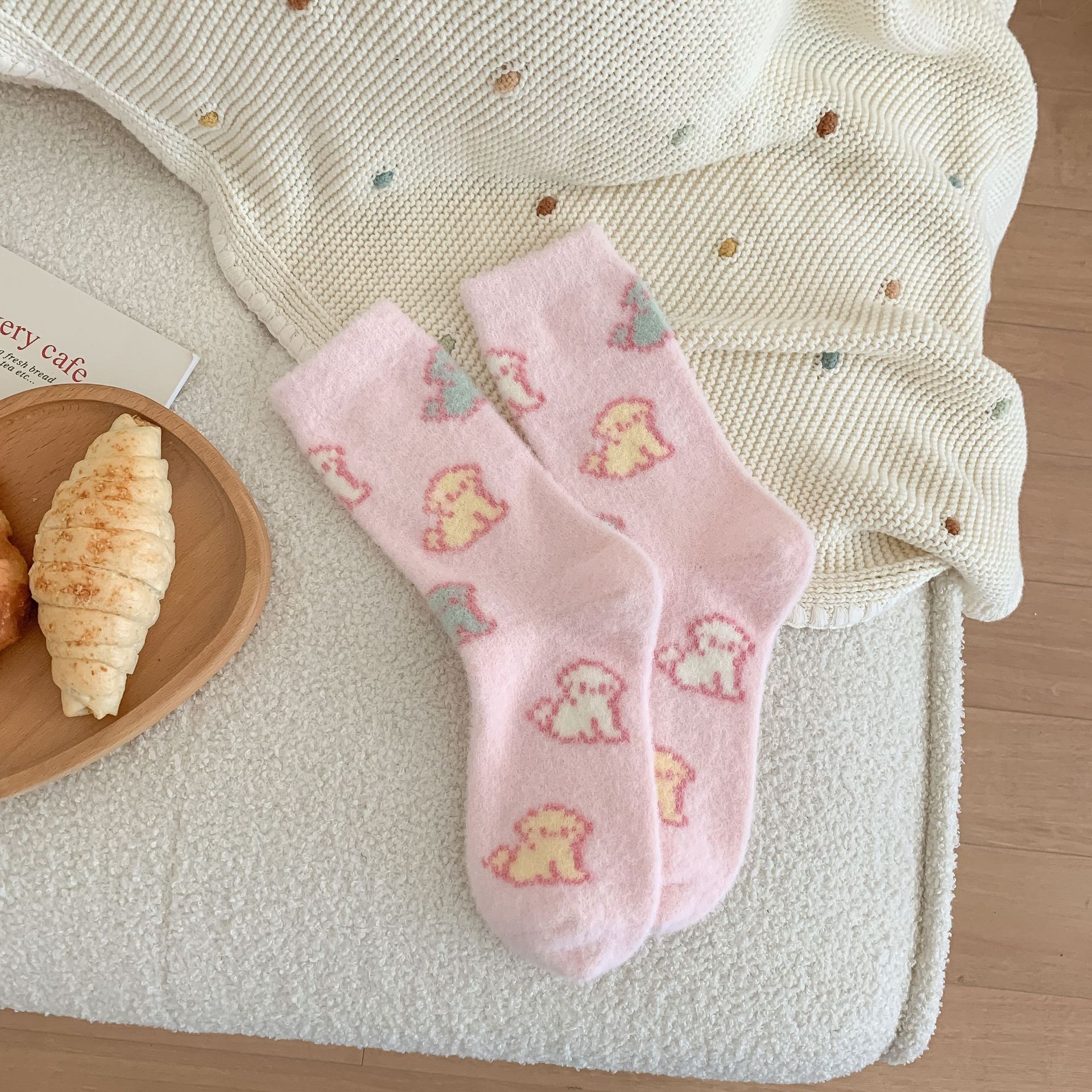핑크 호주 벨벳 양말 어린이 가을과 겨울 두꺼운 따뜻한 튜브 양말 일본 만화 줄무늬 달콤한 플러시 바닥 양말스토어 가기