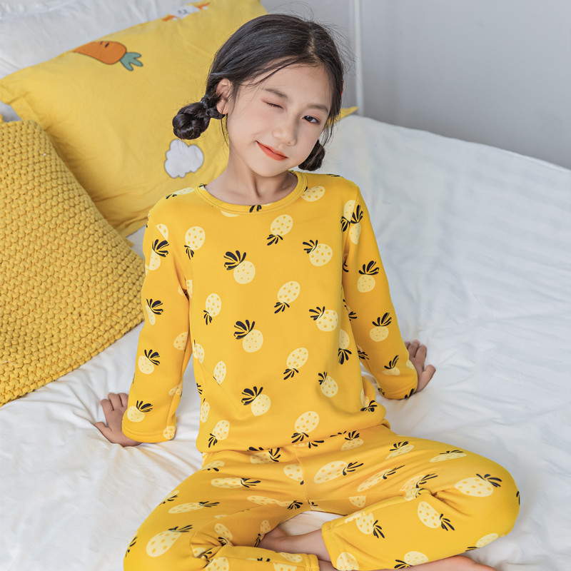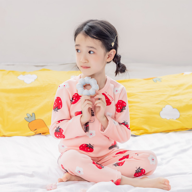 가을과 겨울 어린이 기모 가을 옷 가을 바지 2024 소녀 만화 인쇄 두꺼운 따뜻한 집 옷 잠옷 세트