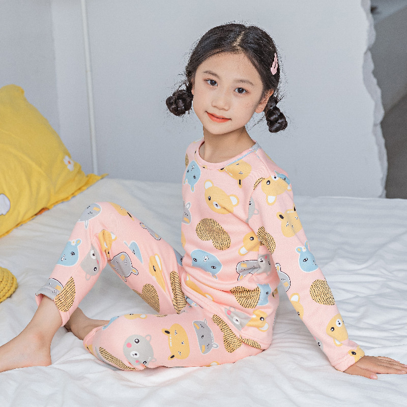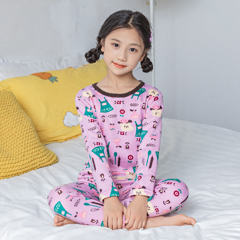 가을과 겨울 어린이 기모 가을 옷 가을 바지 2024 소녀 만화 인쇄 두꺼운 따뜻한 집 옷 잠옷 세트스토어 가기