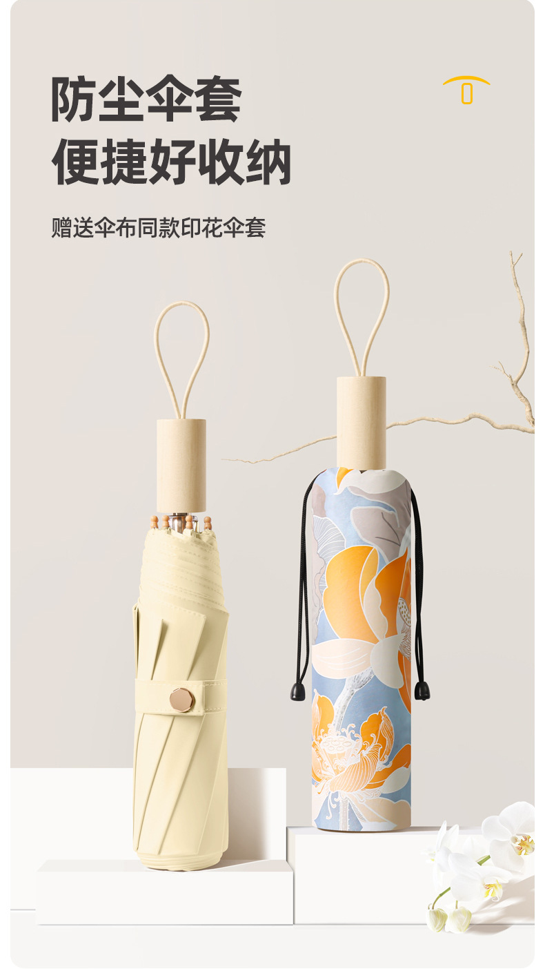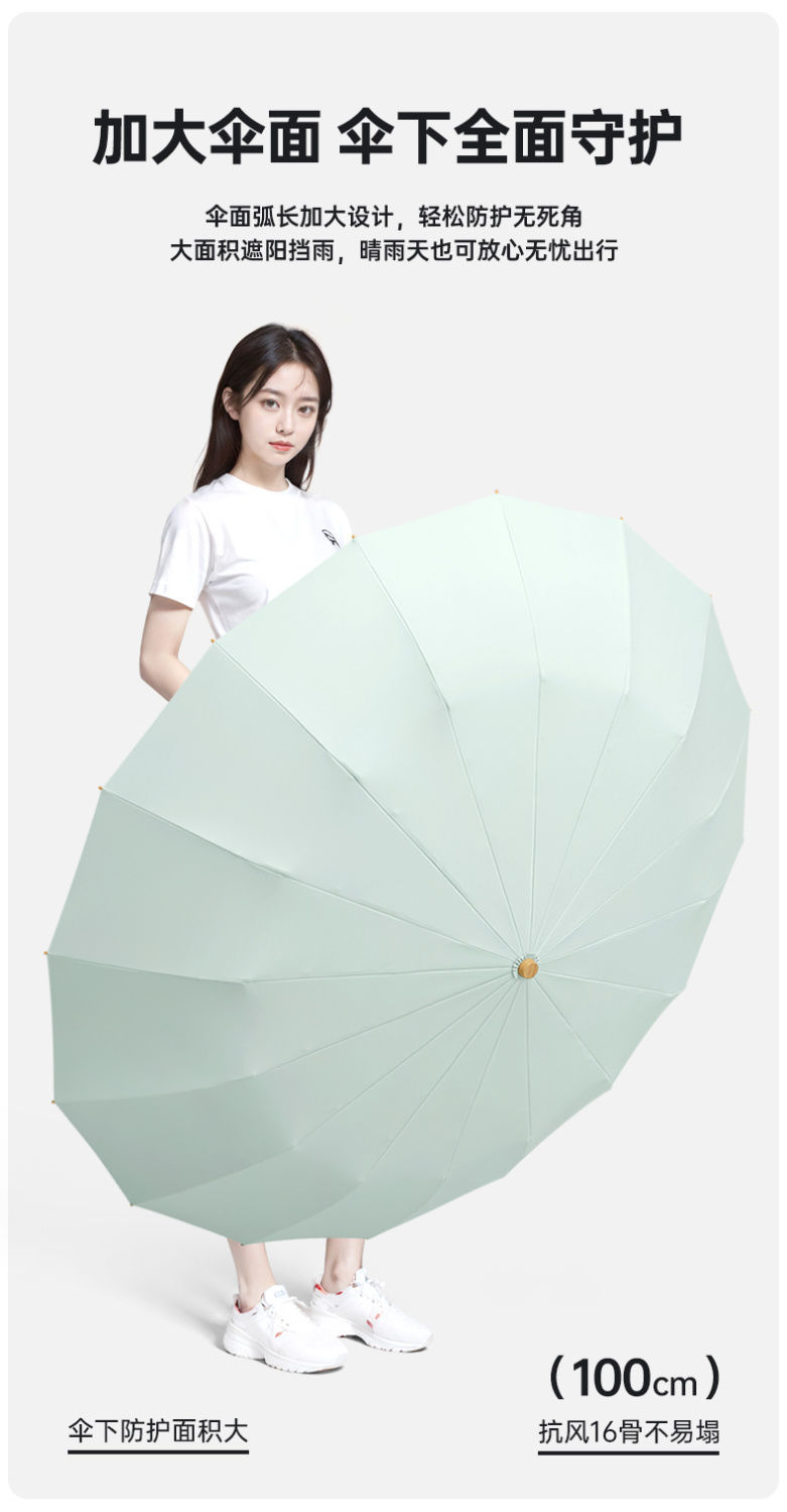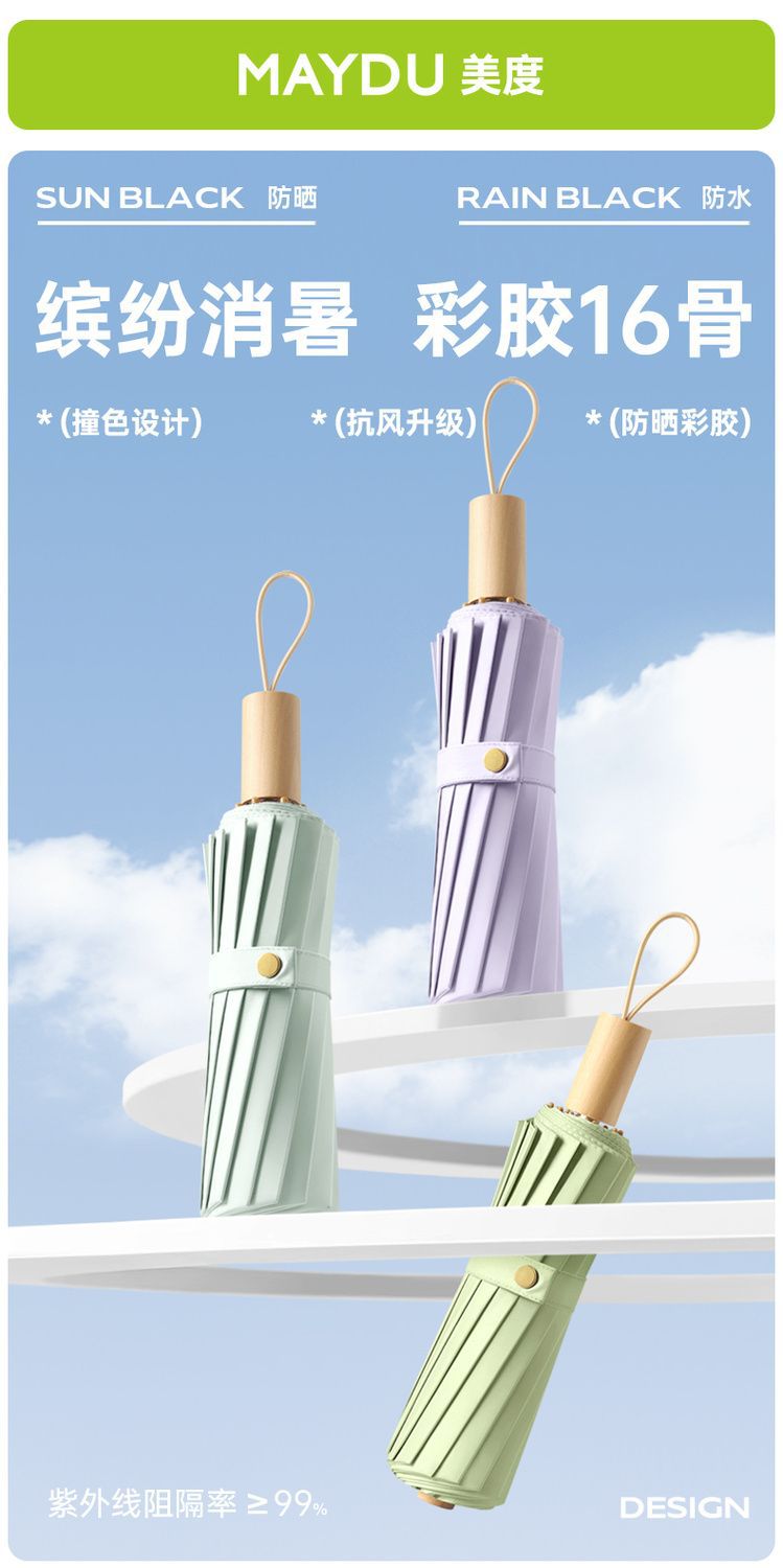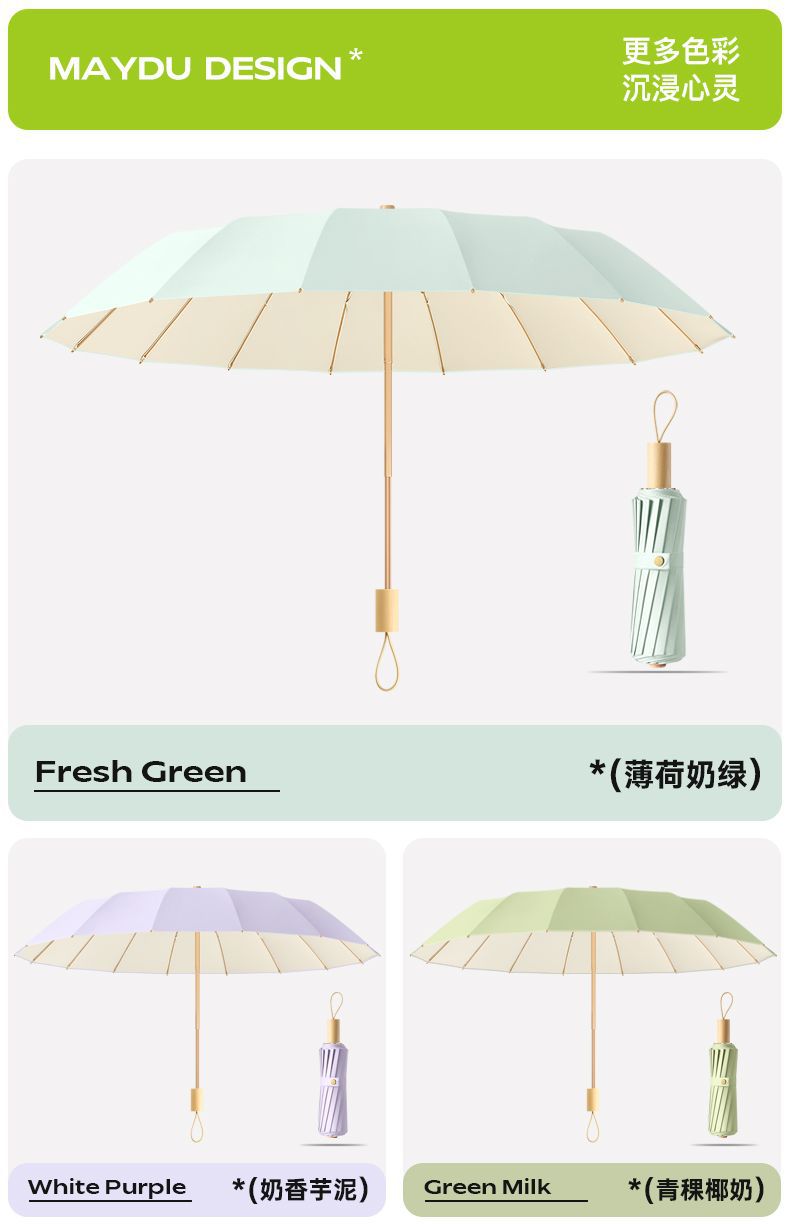 새로운 16 개의 뼈 나무 손잡이 조각 컬러 접착제 직물 양산 우산 3 배 선 스크린 우산 접히는 Sunsun Umbrella Dual-햇빛과 비를 위한 사용스토어 가기