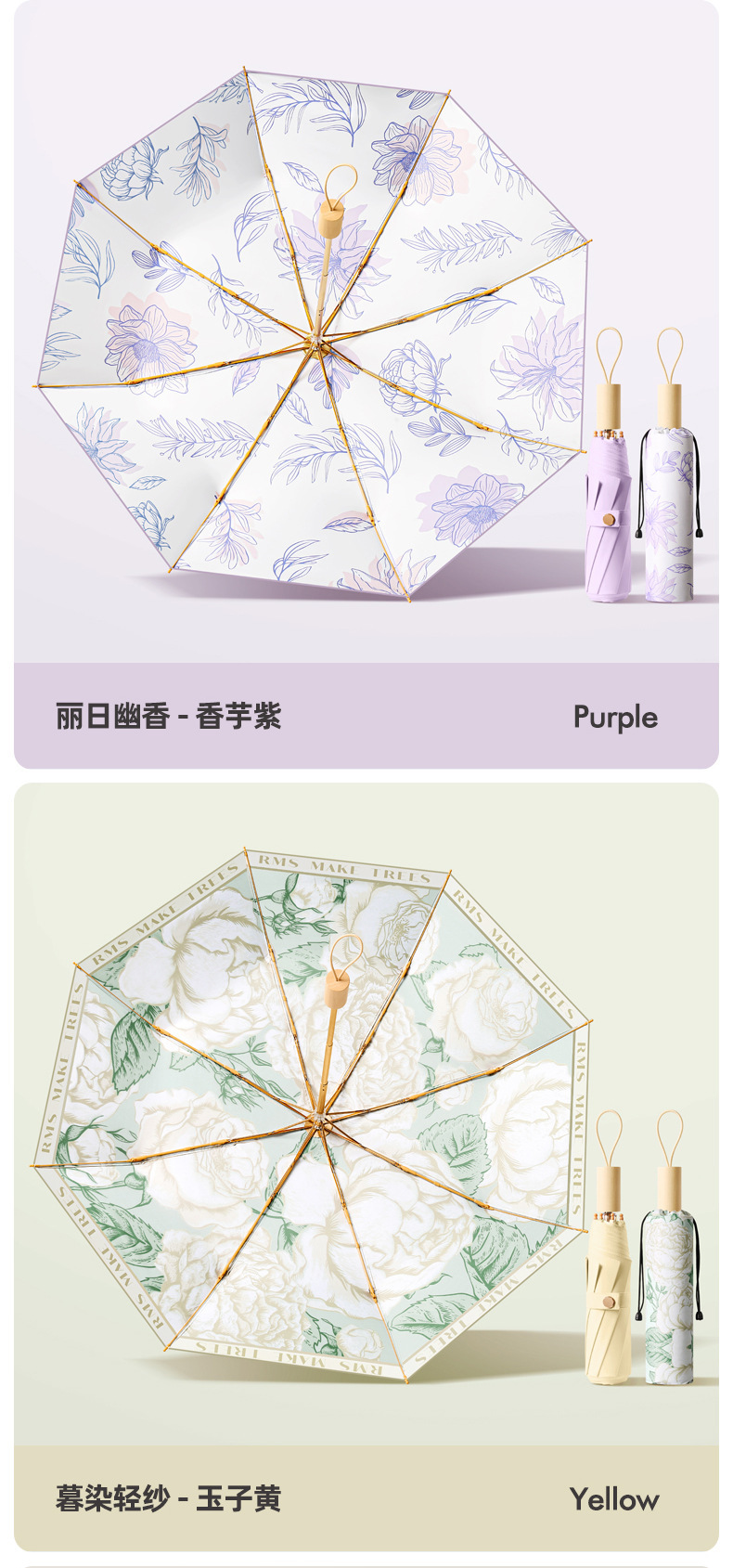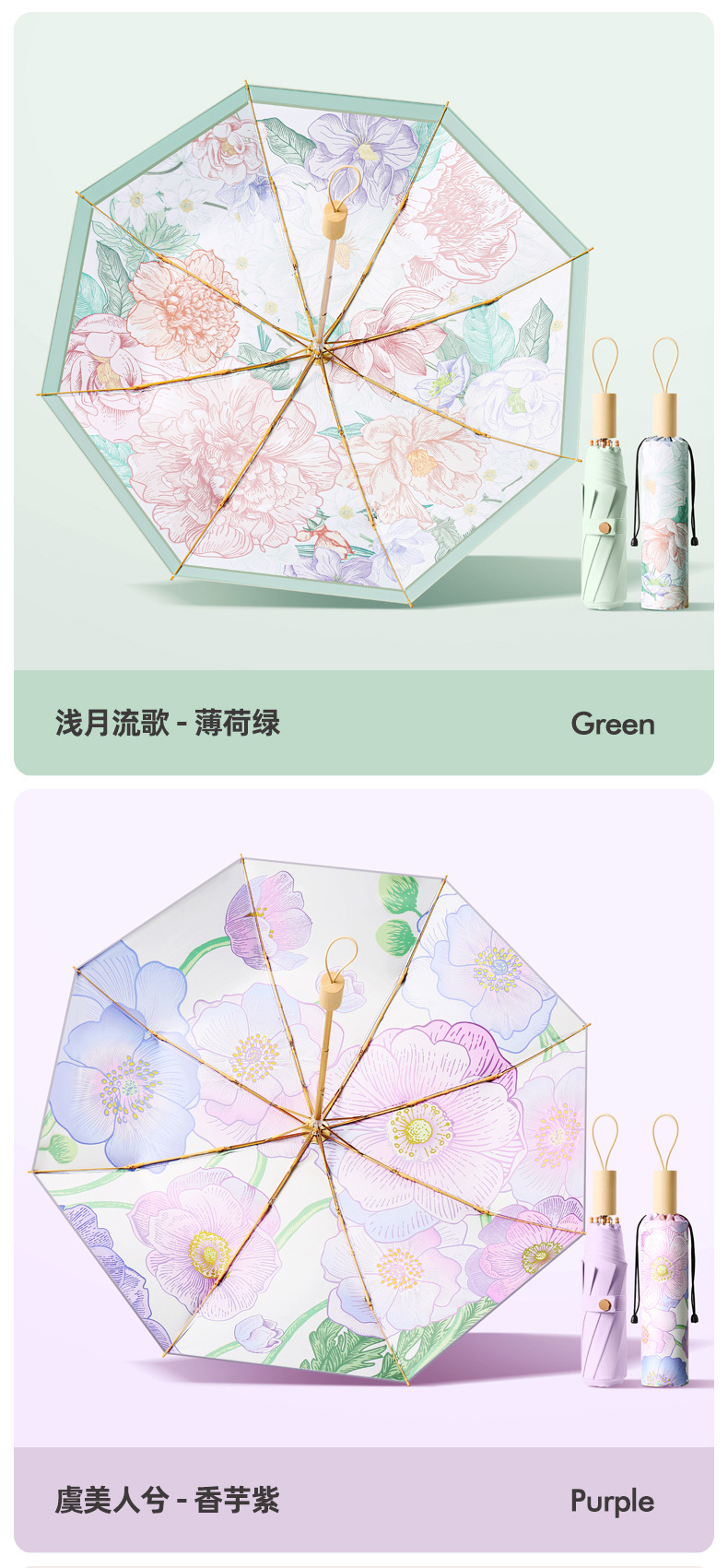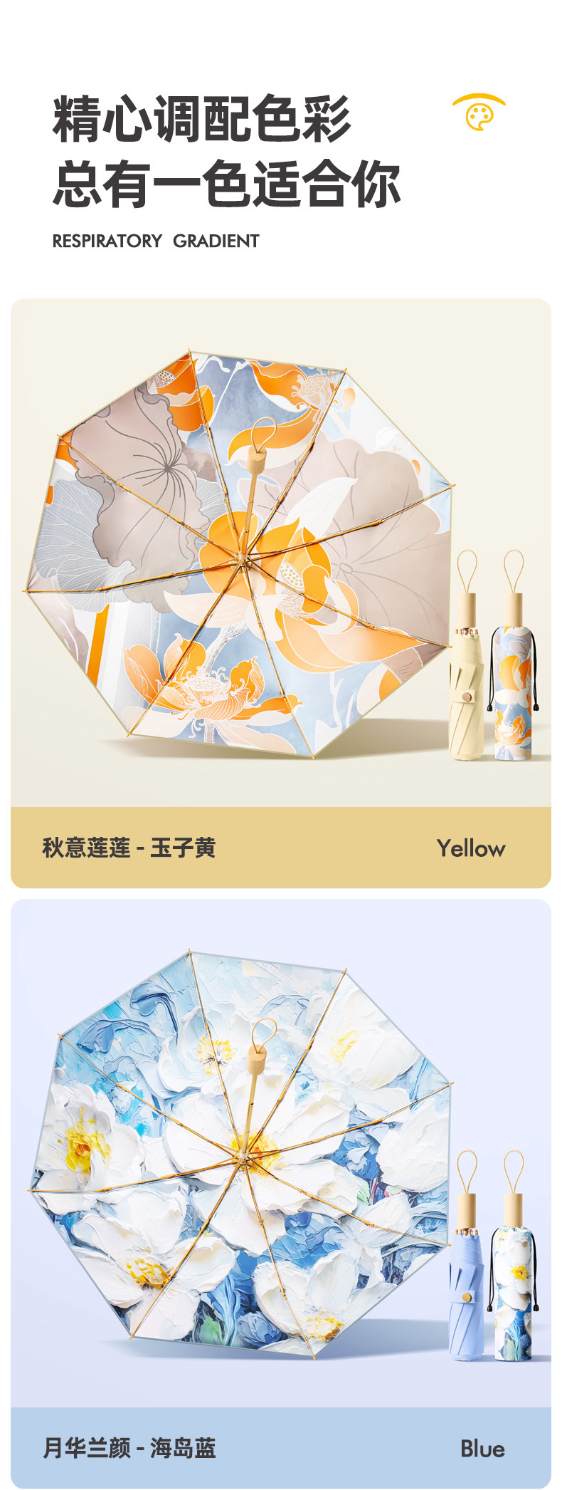 새로운 16 개의 뼈 나무 손잡이 조각 컬러 접착제 직물 양산 우산 3 배 선 스크린 우산 접히는 Sunsun Umbrella Dual-햇빛과 비를 위한 사용스토어 가기