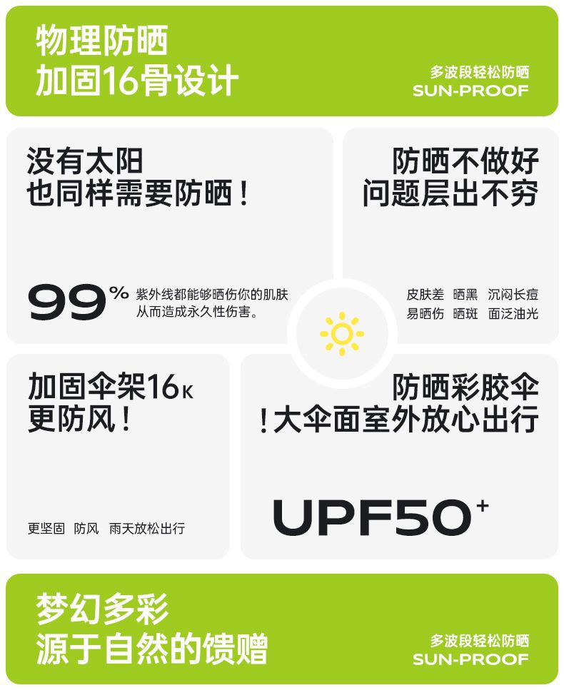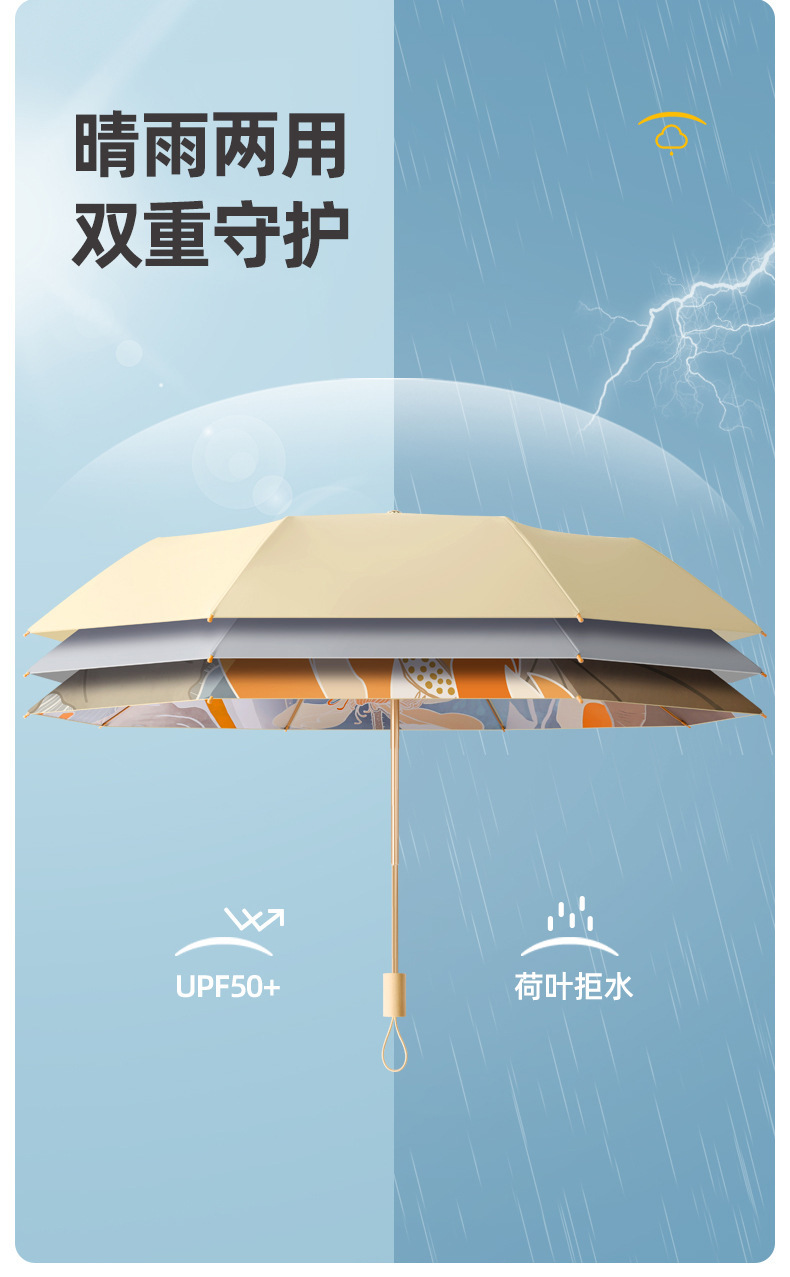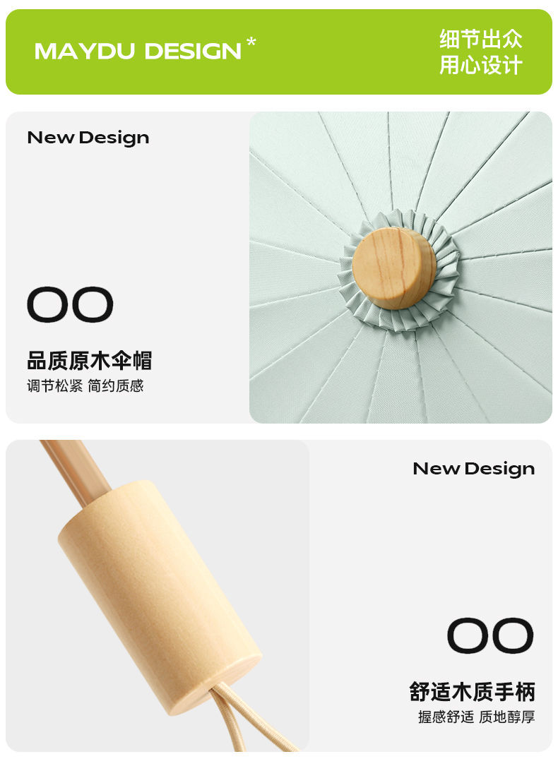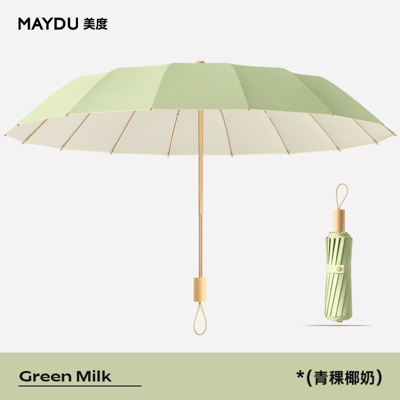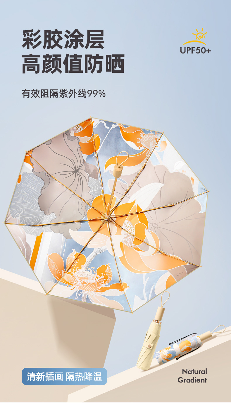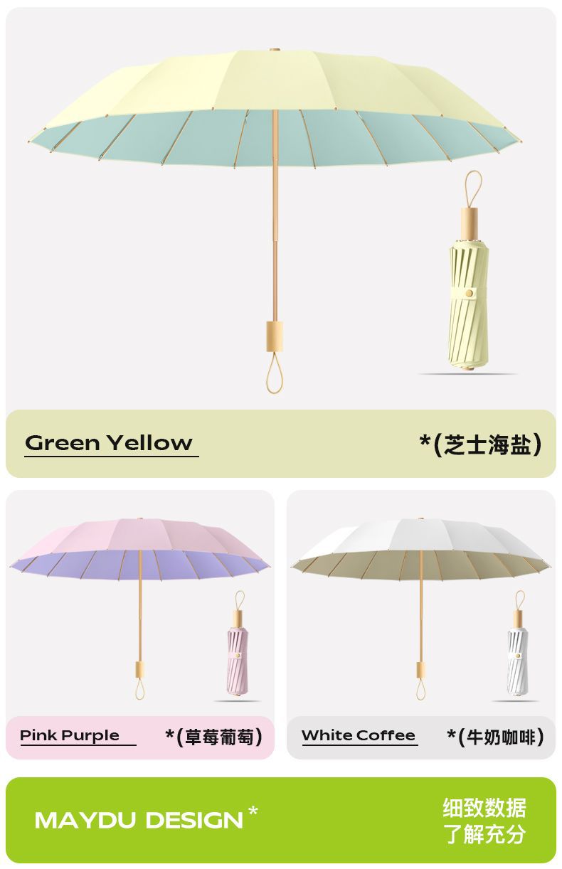 새로운 16 개의 뼈 나무 손잡이 조각 컬러 접착제 직물 양산 우산 3 배 선 스크린 우산 접히는 Sunsun Umbrella Dual-햇빛과 비를 위한 사용