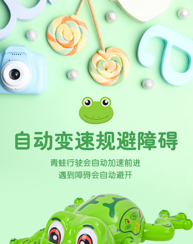 대외 무역 새로운 빛 음악 전기 보편적 인 장애물 회피 운전 자동 가변 속도 개구리 만화 동물 어린이 장난감스토어 가기