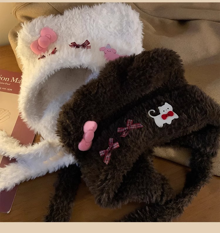 귀여운 곰 귀 고양이 활 푹신한 모자 여성의 가을과 겨울 따뜻한 귀 보호 레이 펑 모자 얼굴 쇼 모자