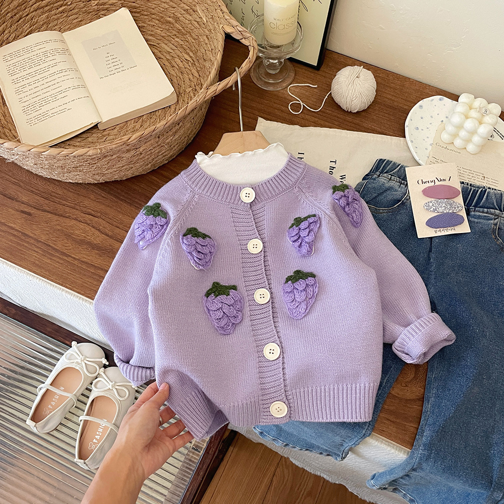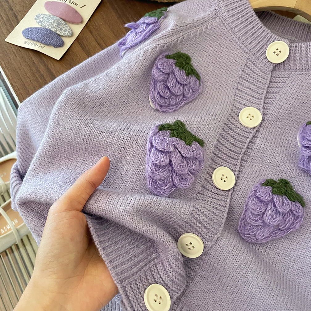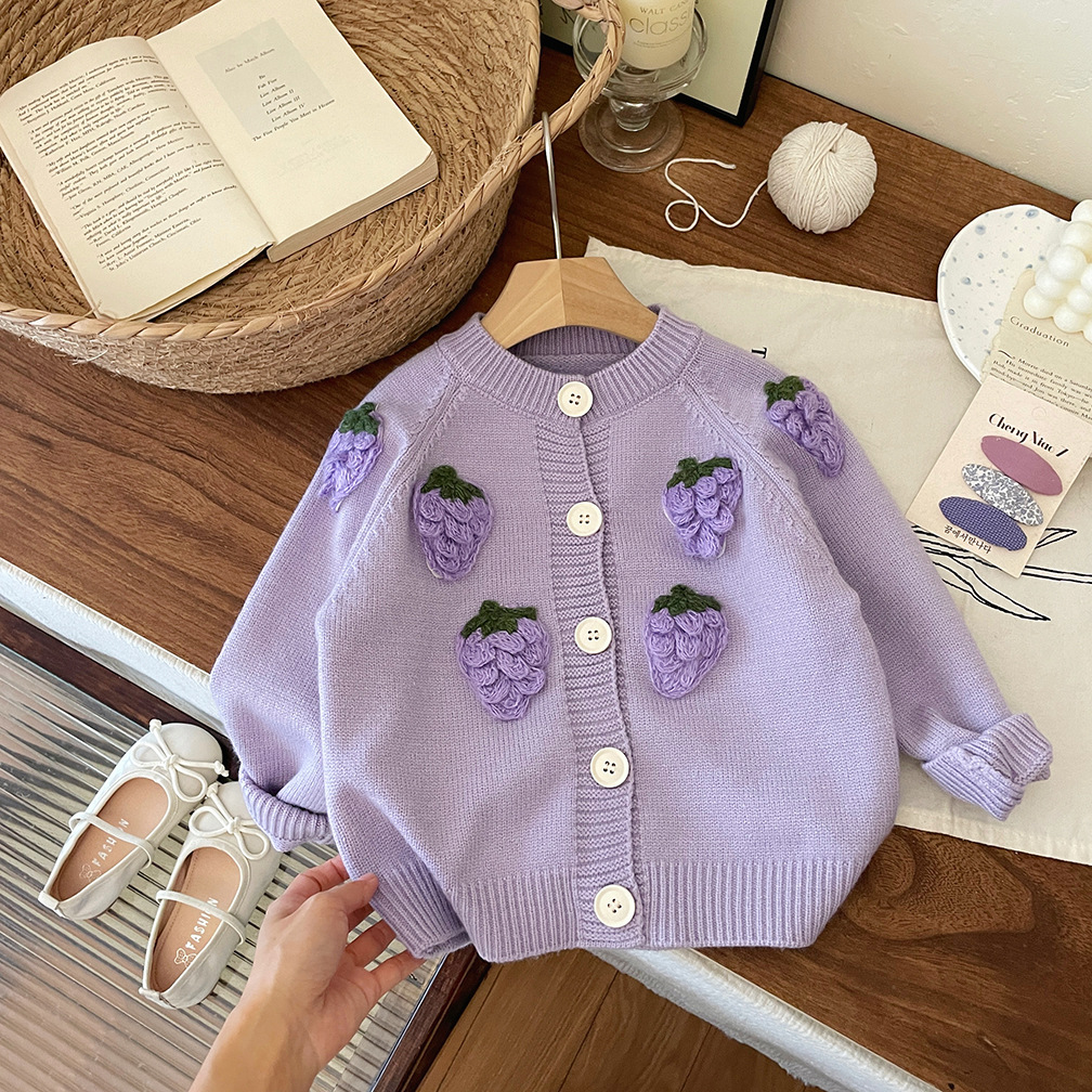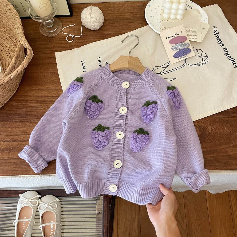 25년 새 가을 겨울 여아 수제 뜨개질 포도색 스웨터 가디건, 어린 소녀 니트 재킷, 세련된 스웨터스토어 가기