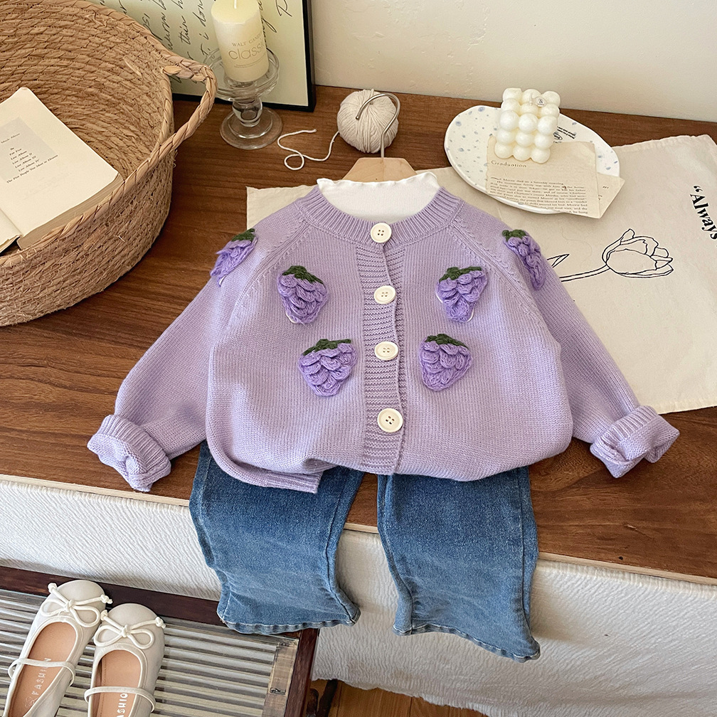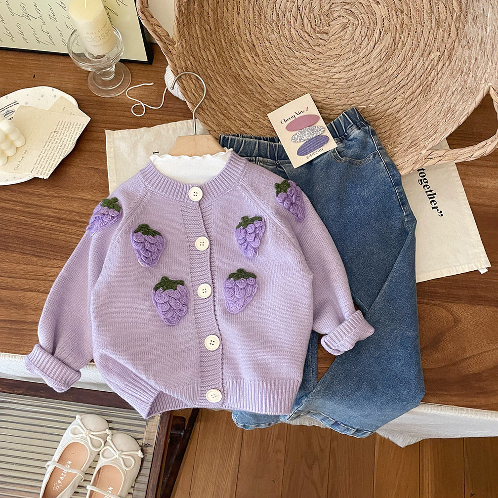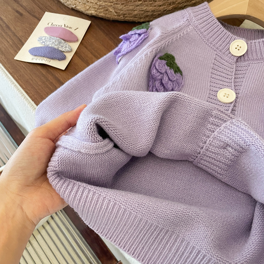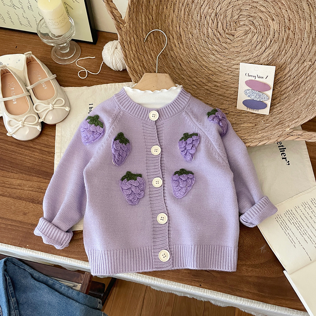 25년 새 가을 겨울 여아 수제 뜨개질 포도색 스웨터 가디건, 어린 소녀 니트 재킷, 세련된 스웨터스토어 가기