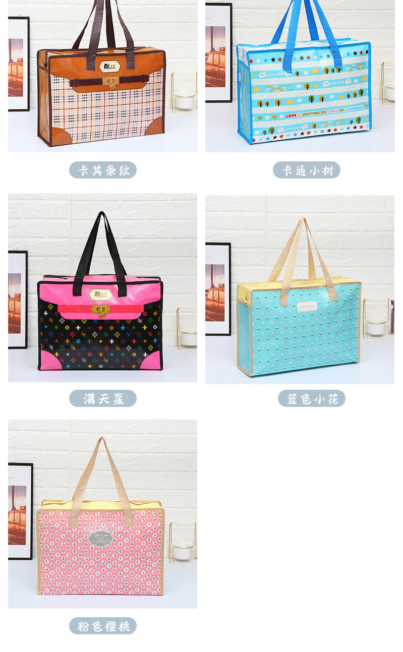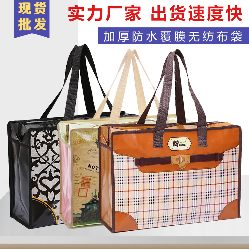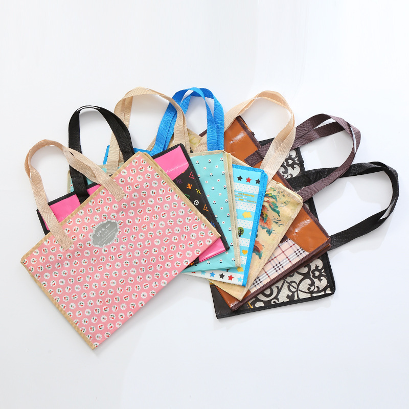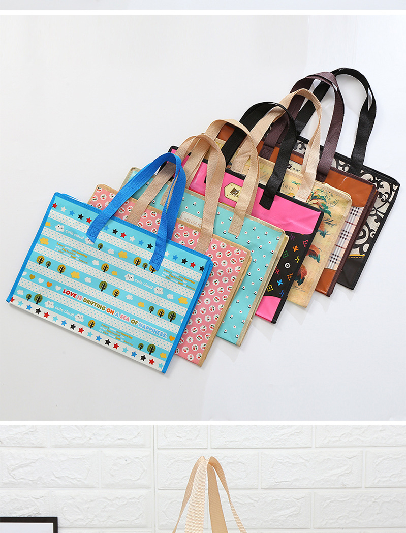 국경 재고 컬러 부직포 코팅 방수 핸드백 패션 인쇄 선물 포장 쇼핑백 수평 버전