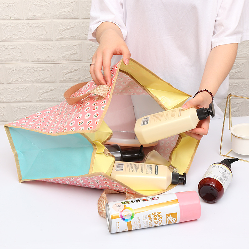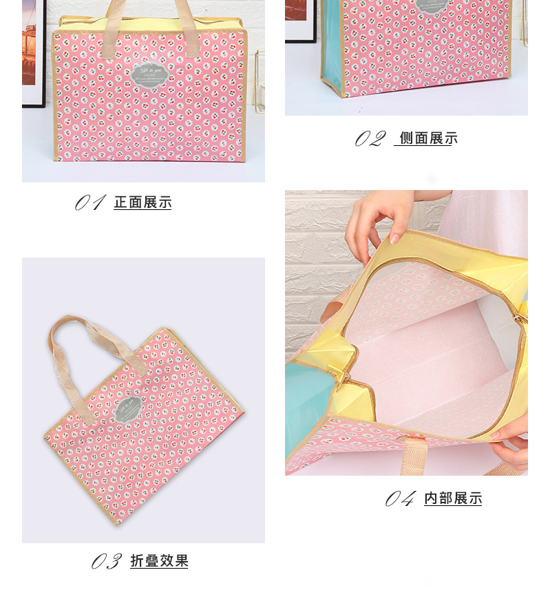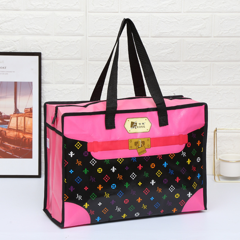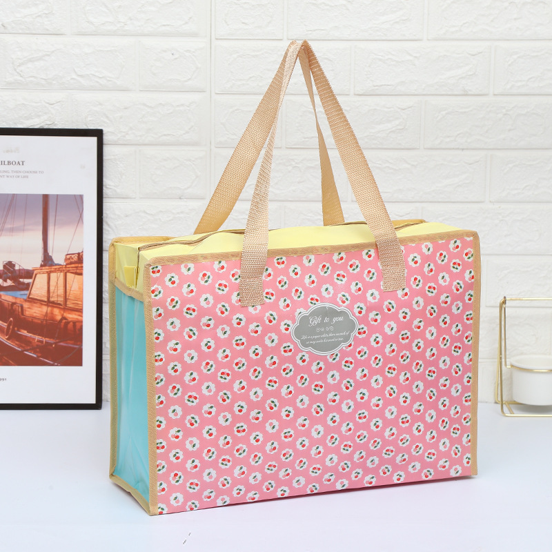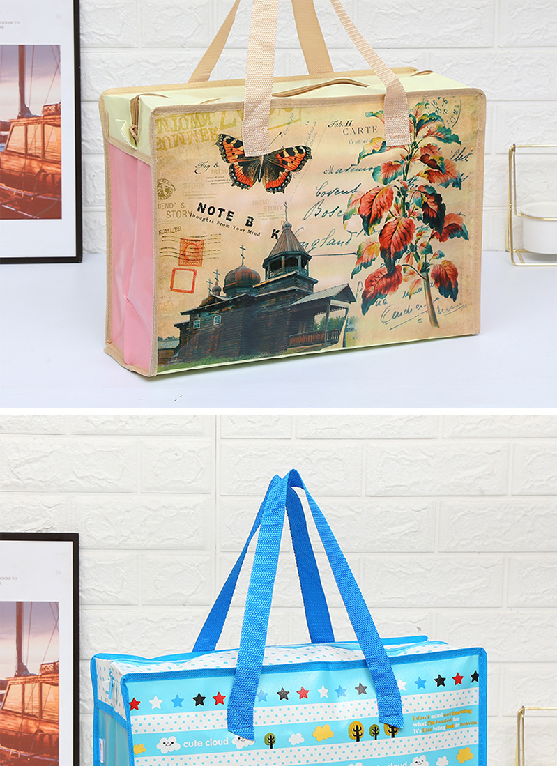 국경 재고 컬러 부직포 코팅 방수 핸드백 패션 인쇄 선물 포장 쇼핑백 수평 버전