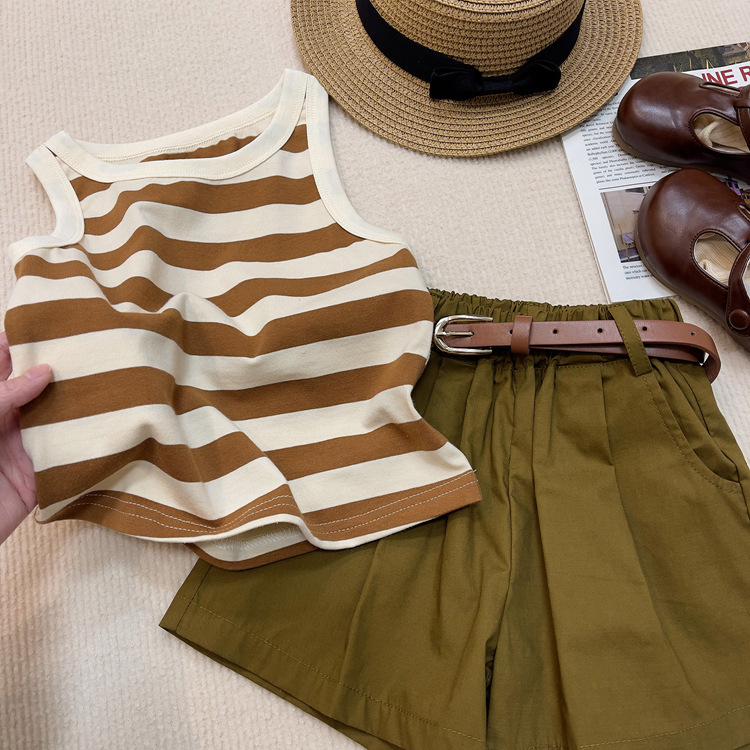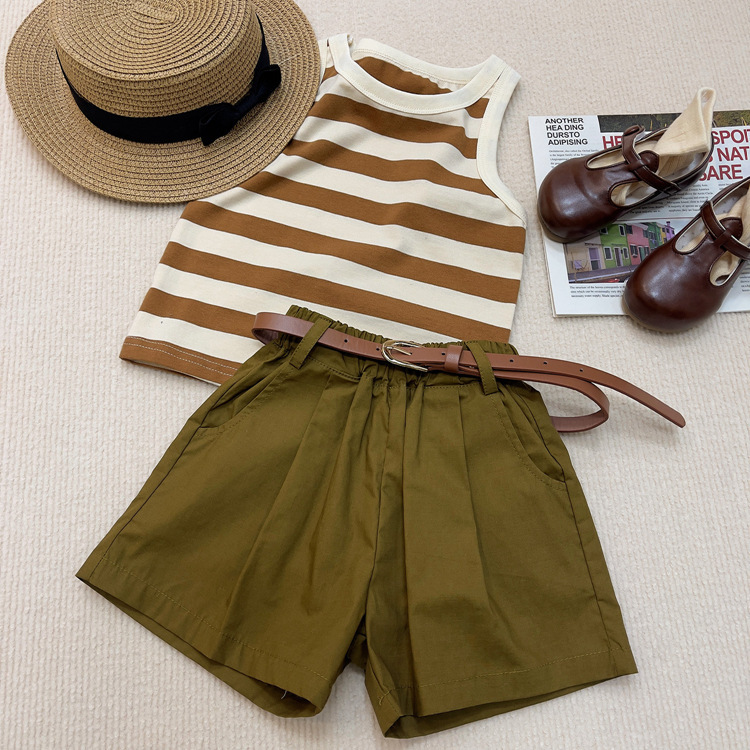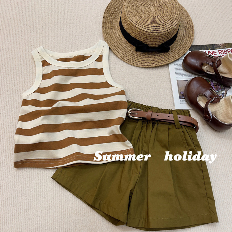 2025년 한국판 신상 아동 조끼 세트, 패셔너블하고 스타일리쉬한 유아용 스트라이프 반바지 투피스 세트, 원피스 배송스토어 가기