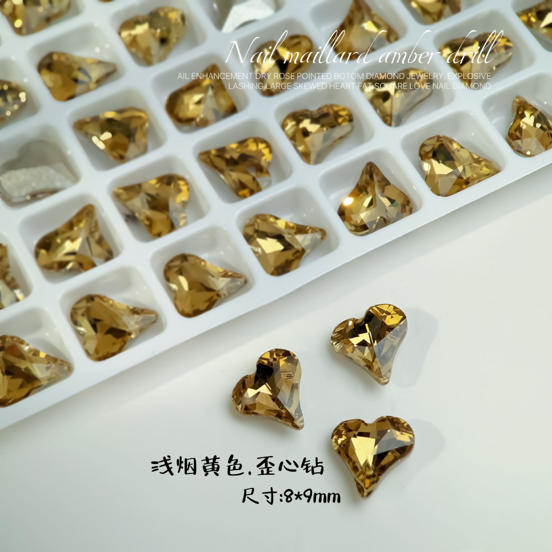 Maillard 컬러 네일 아트 쥬얼리 K9 고급 뾰족한 다이아몬드 진한 베이지 다크 브라운 사탕 비뚤어진 심장 3 차원 네일 더미 다이아몬드 쥬얼리
