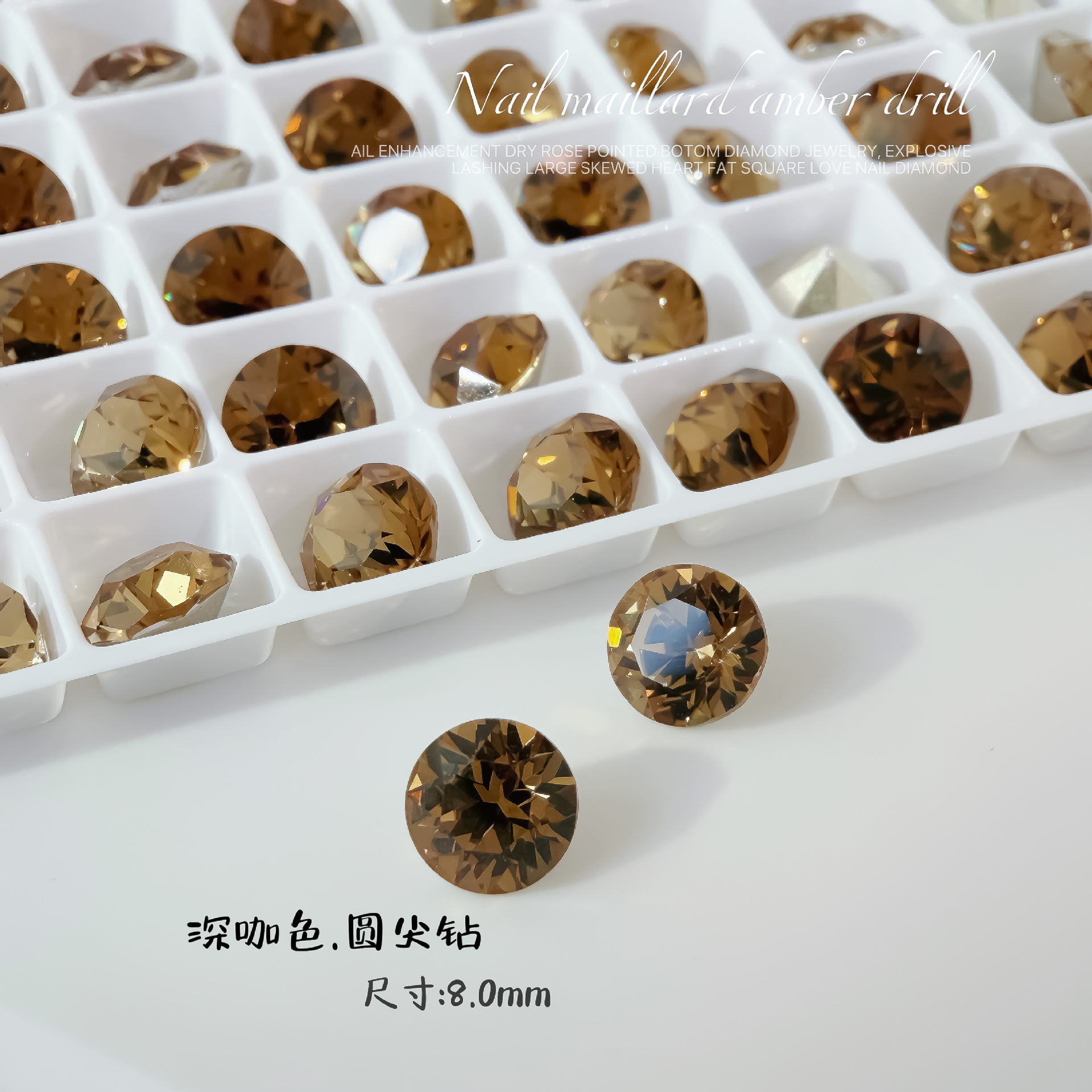 • 고품질 다크 브라운 포인티드 바텀 다이아몬드 [8.0mm 라운드 포인티드 다이아몬드]