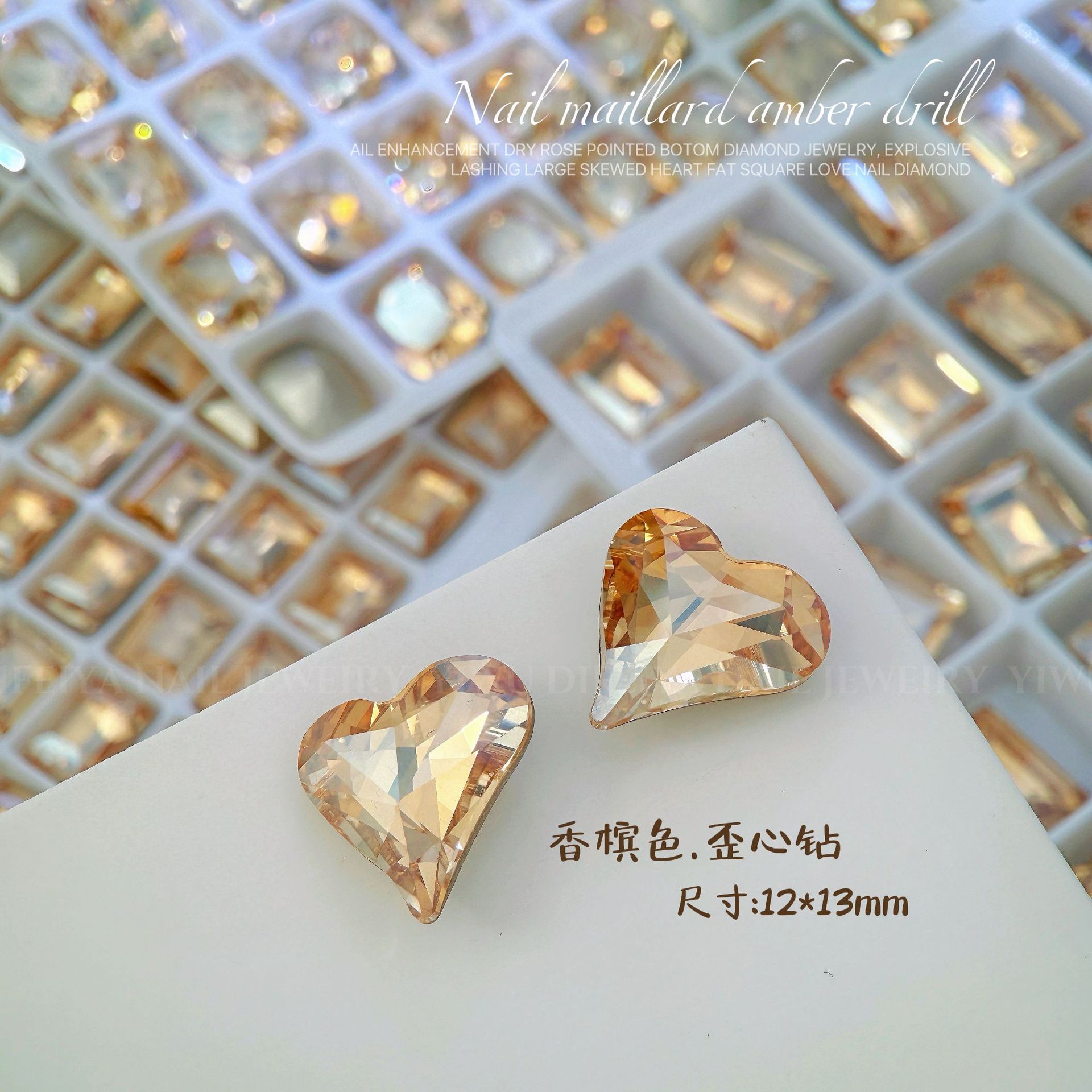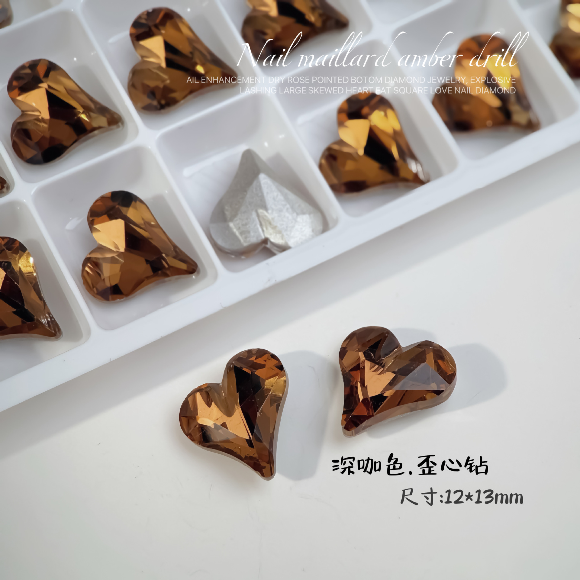 Maillard 컬러 네일 아트 쥬얼리 K9 고급 뾰족한 다이아몬드 진한 베이지 다크 브라운 사탕 비뚤어진 심장 3 차원 네일 더미 다이아몬드 쥬얼리스토어 가기
