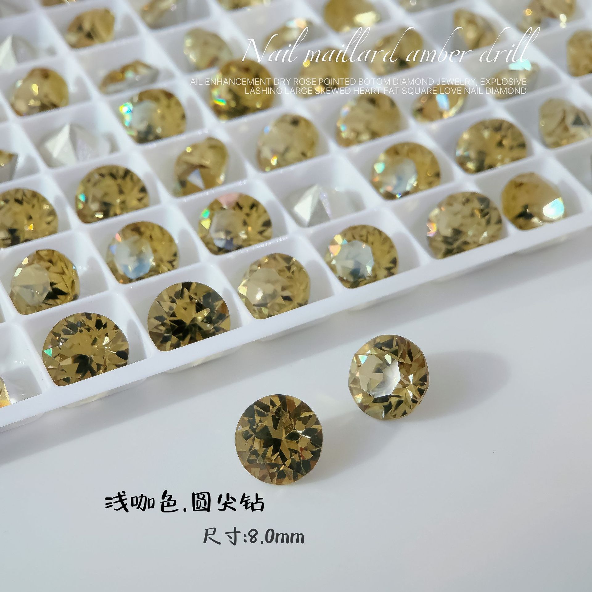 • 고품질 라이트 스모크 옐로우 포인트 바텀 다이아몬드 [8.0mm 라운드 포인트 다이아몬드]