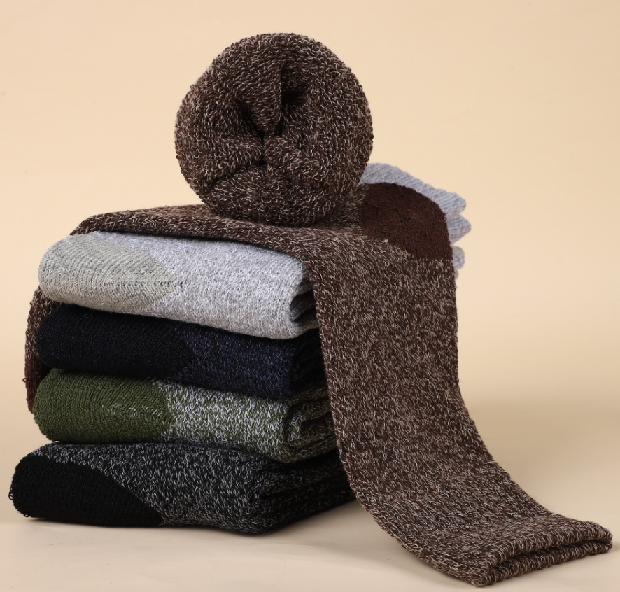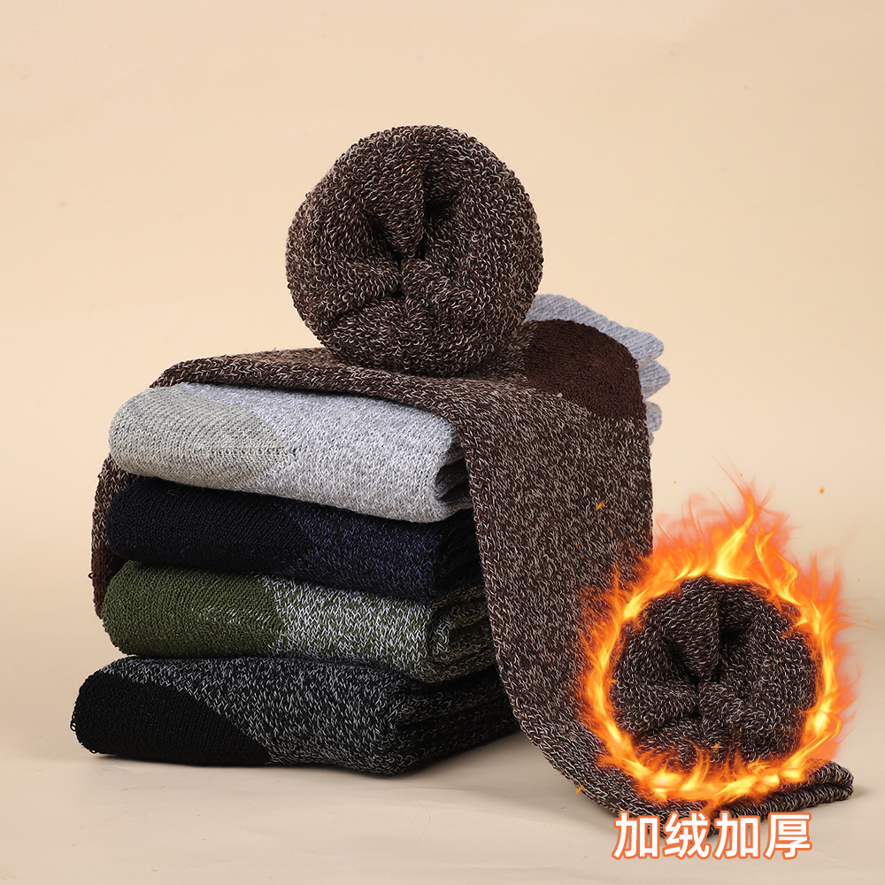 남성과 여성의 양말 겨울 기모 두꺼운 열 저장 따뜻한 수건 양말 중간 튜브 테리 양말 바닥 양말 야외 등반