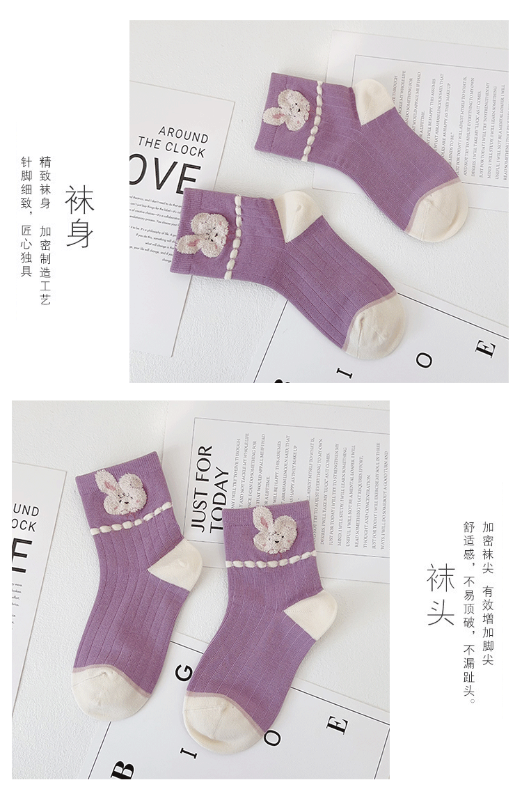 어린이 양말의 이쌍 가을 · 겨울 새 만화 토끼 중견 빗질 코튼 한국식 소녀 뼈없는 양말 학생들스토어 가기
