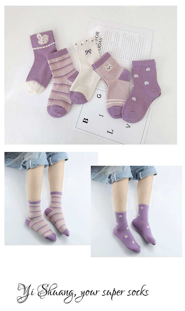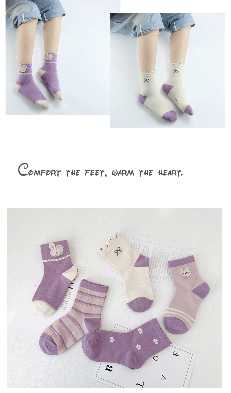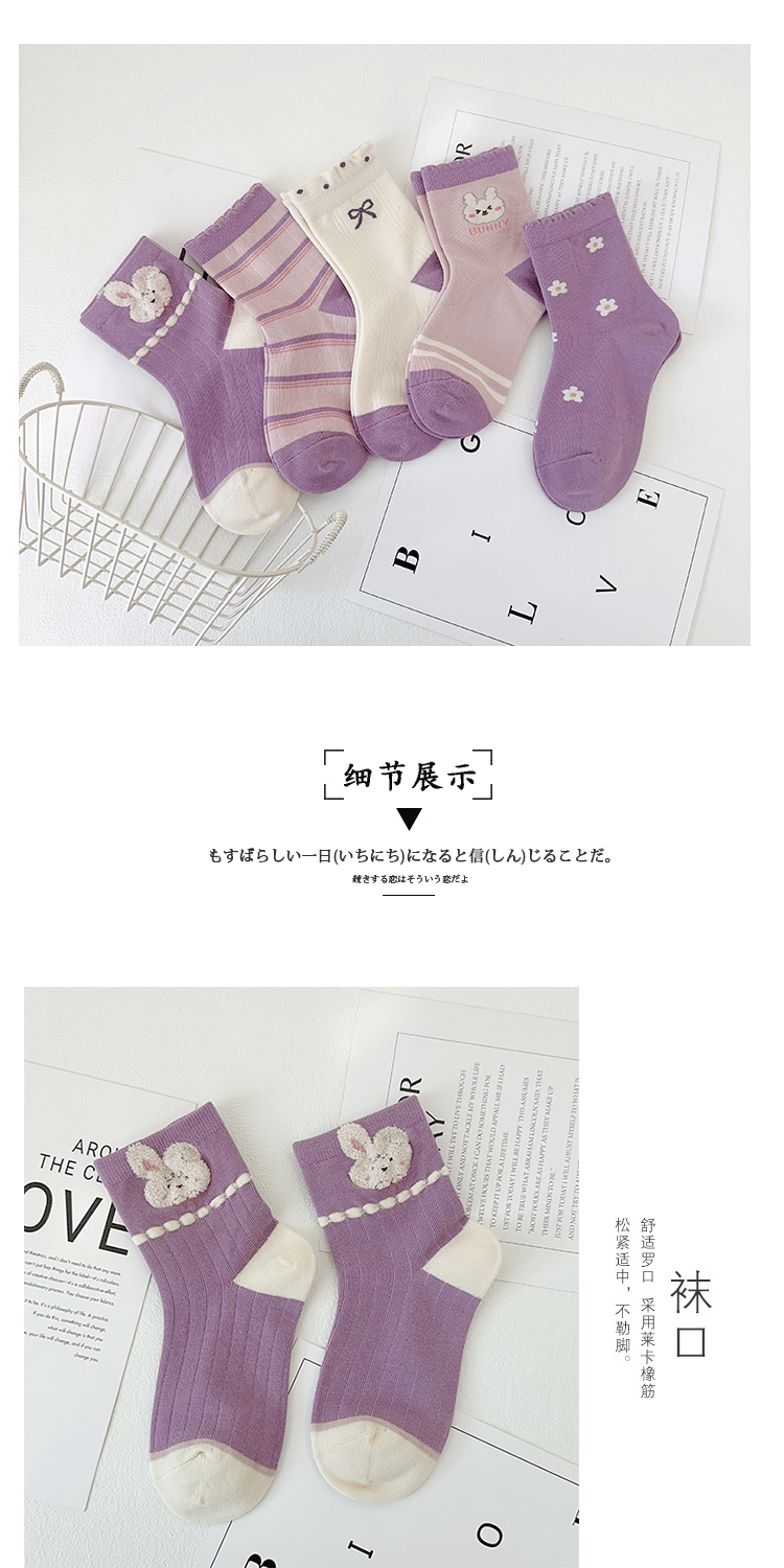 어린이 양말의 이쌍 가을 · 겨울 새 만화 토끼 중견 빗질 코튼 한국식 소녀 뼈없는 양말 학생들