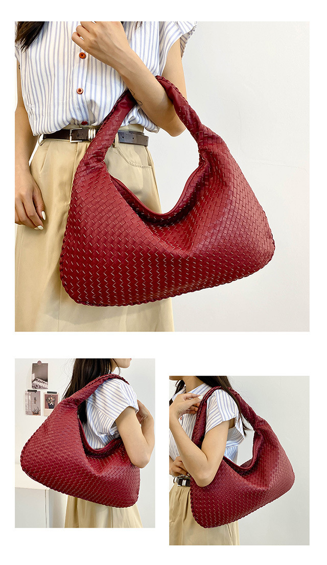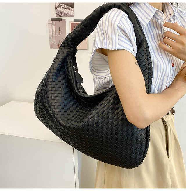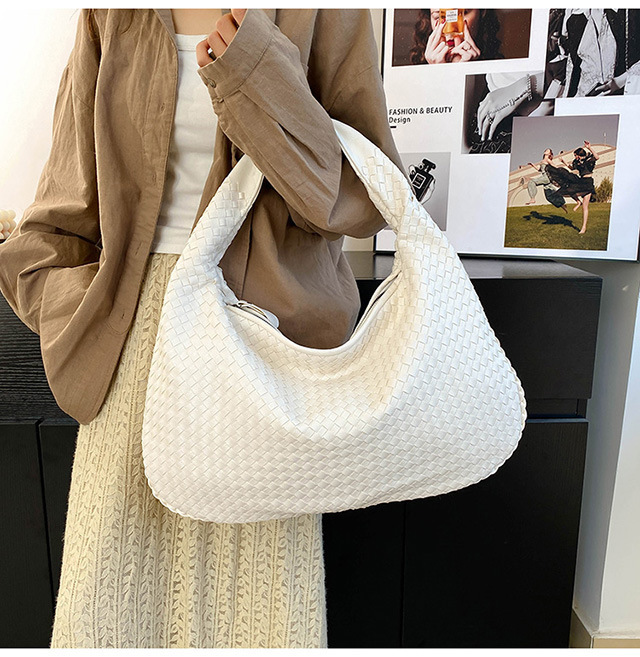 수제 짠 여성용 가방 유행 속옷 여성용 가방 싱글 어깨 유럽과 미국 스타일의 대용량 만두 백 빈티지 초승달 가방 싱글 어깨