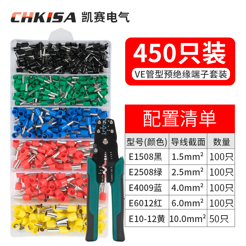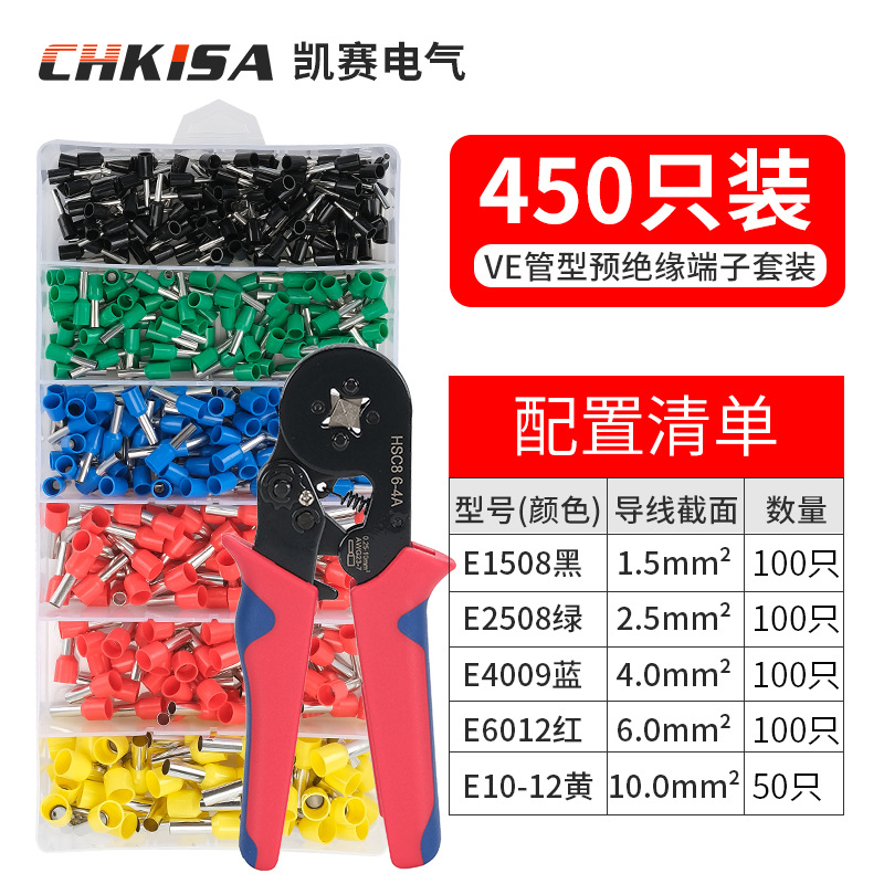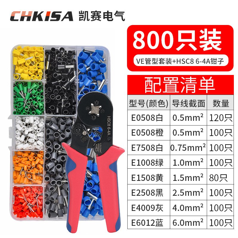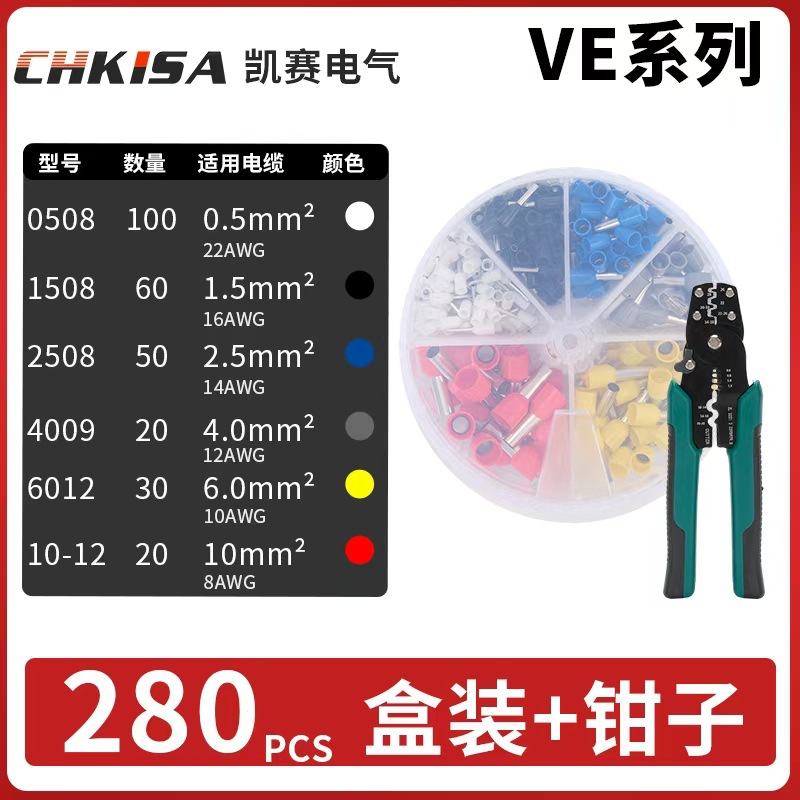 냉간 압착 단자 VE 튜브형 수납함 세트 가정용 전기공용 빠른 전선 단자 압착 펜치