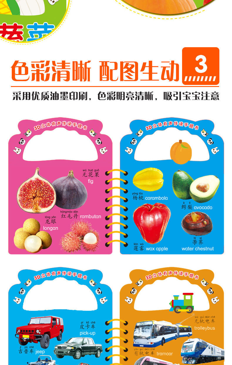 3D 스테레오 사운드 읽기 휴대용 책 0-6 세 어린이 이야기 책은 조기 교육 깨달음인지 플립 북을 망치지 않습니다.스토어 가기