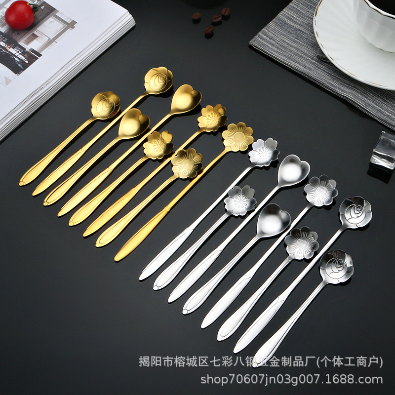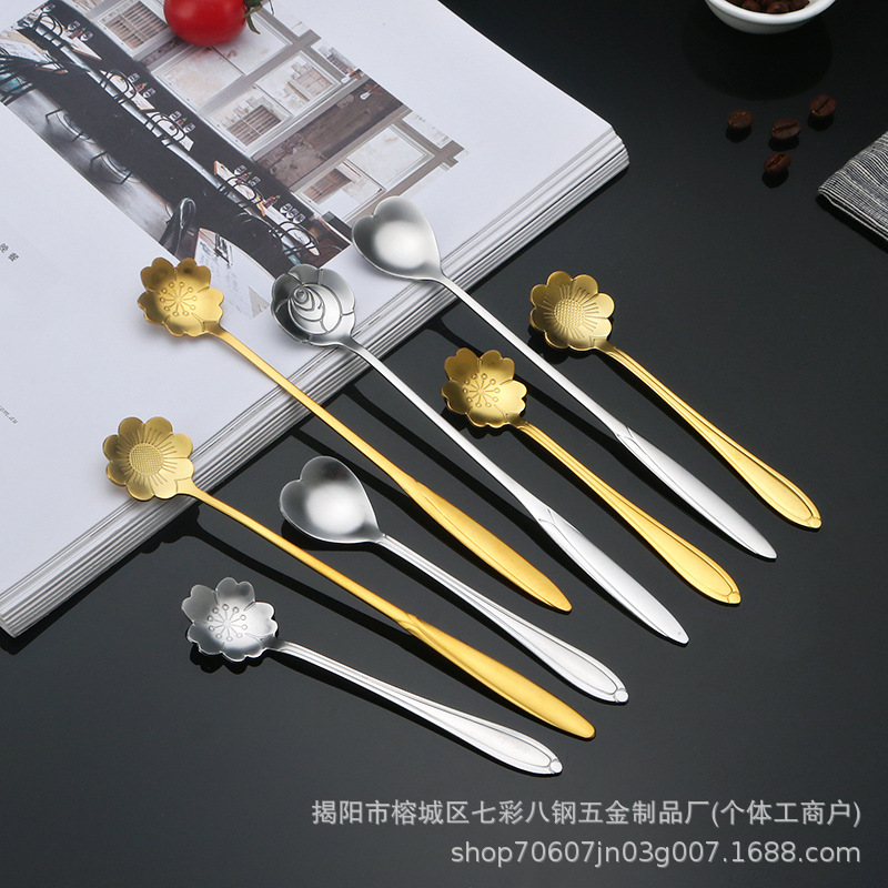 스테인레스 스틸 황금 벚꽃 스푼 창조적 인 하트 스푼 꽃 아침 식사 스푼 커피 스푼 디저트 스푼 혼합 숟가락 새 둥지 숟가락