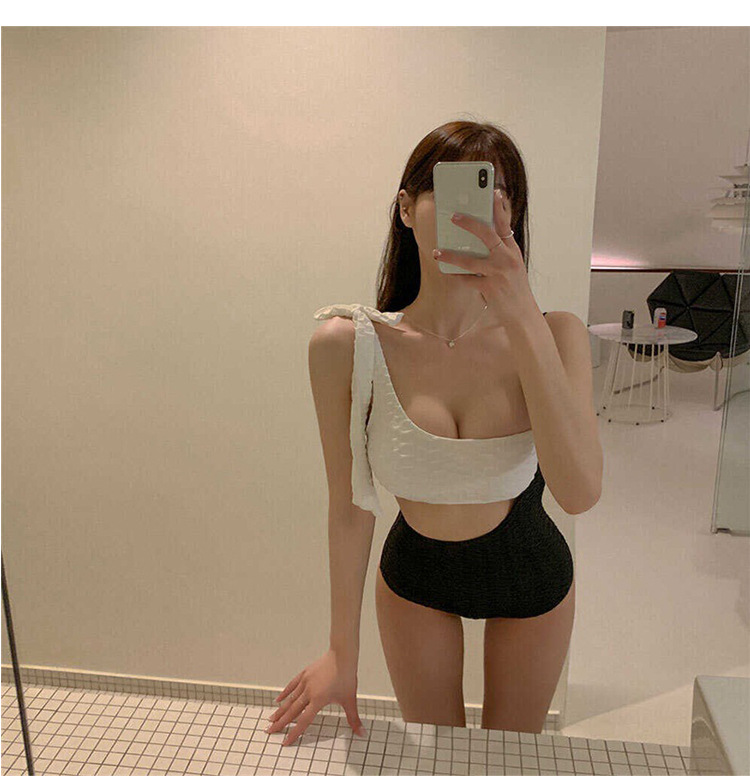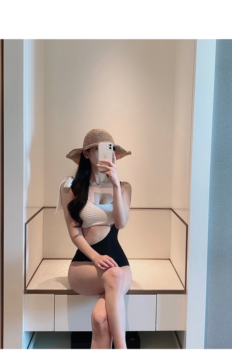 2023 새로운 스타일 ins 스타일 작은 향기 스타일 컬러 매칭 하이 웨이스트 배 커버 슬리밍 배 커버 원피스 온천 수영복스토어 가기