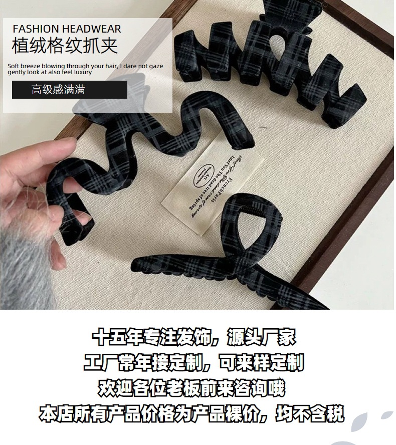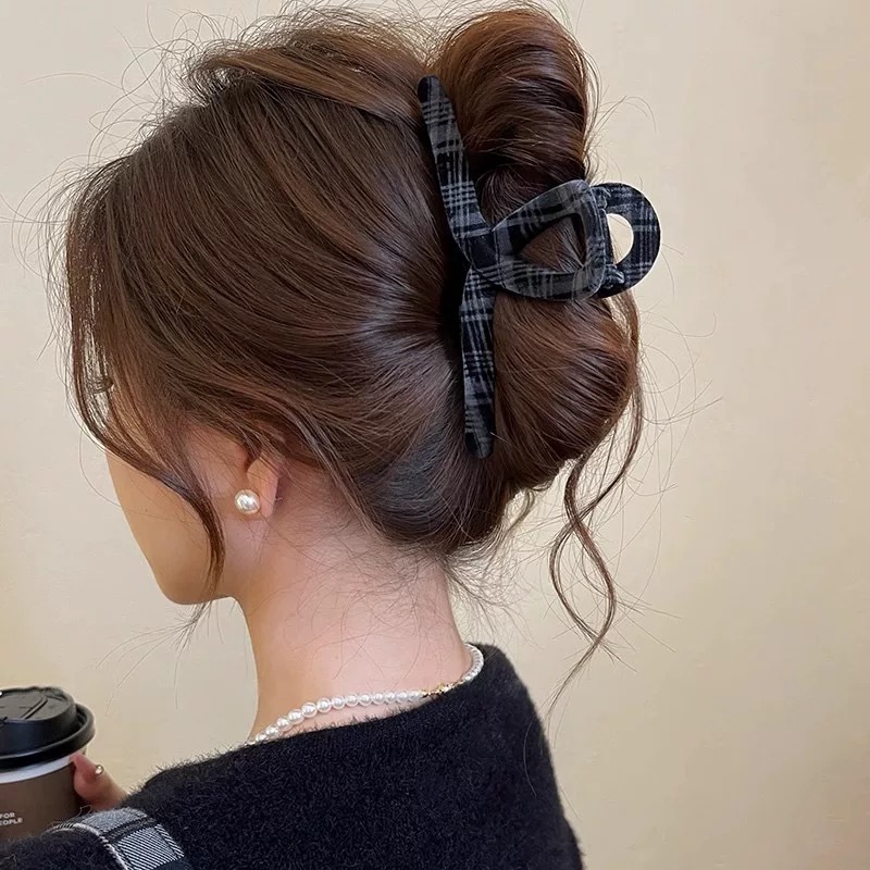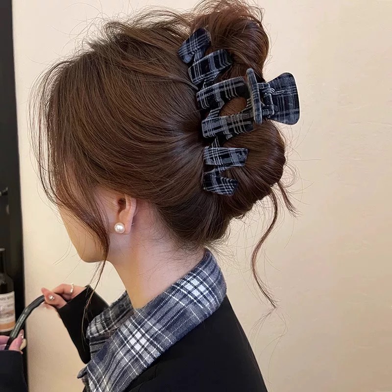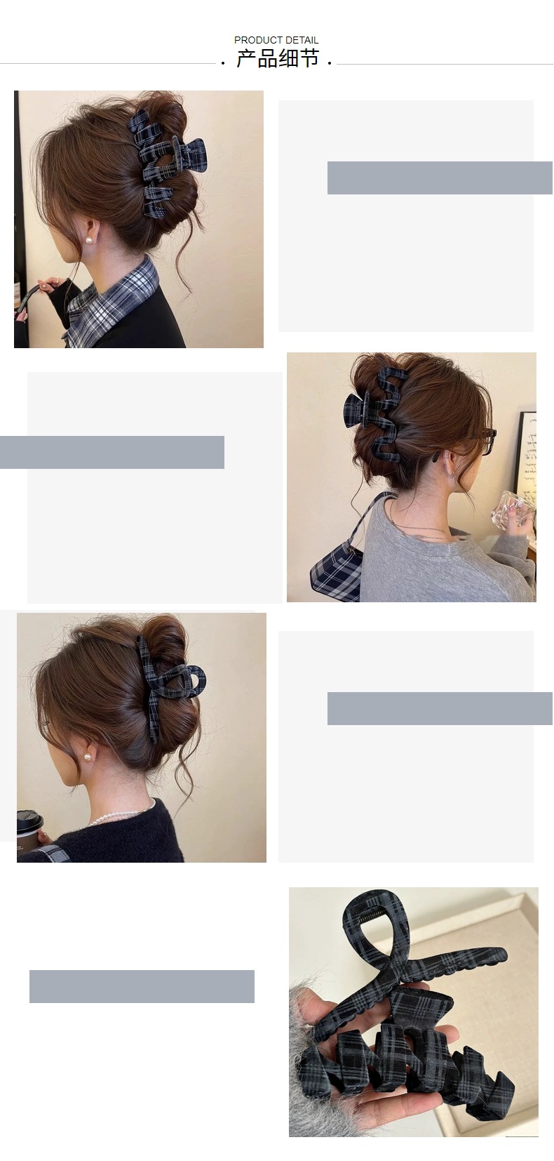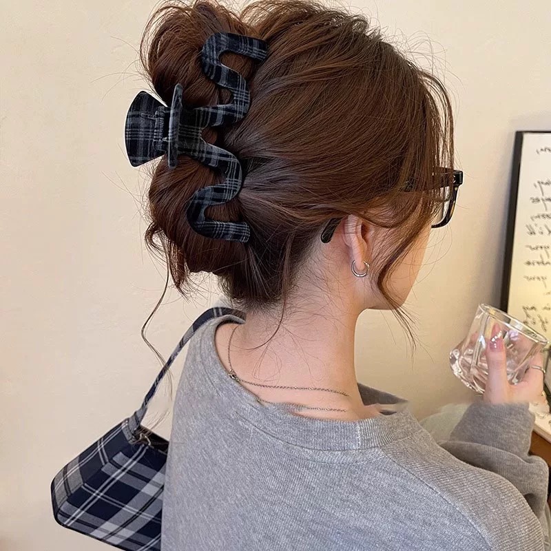 가을과 겨울 새로운 회색 회색 잠금 격자 무늬 잡아 클립 유행 우아한 올 매치 큰 뒤 머리 상어 클립