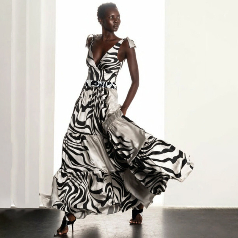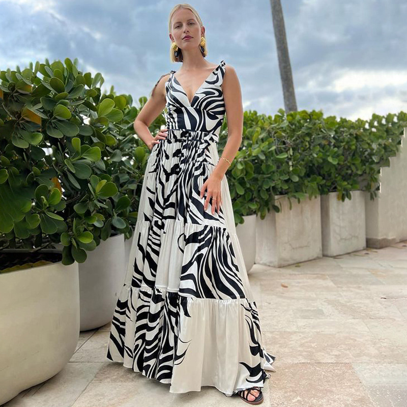2024 유럽과 미국의 새로운 수영복 딥 V 블랙 및 화이트 스트라이프 인쇄 하이 엔드 수영복 세트 여성 국경 폭발스토어 가기