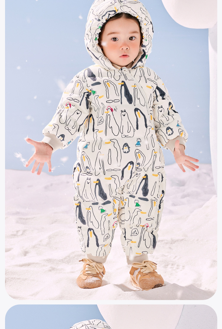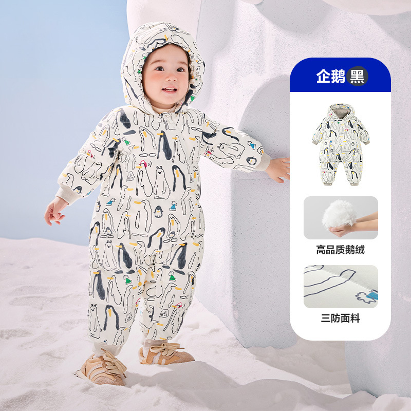 [거위] 3 가지 방지 아기 다운 점프 수트 소녀 아기 상자 밖 겨울 옷 새 아이들의 두꺼운 등산 옷
