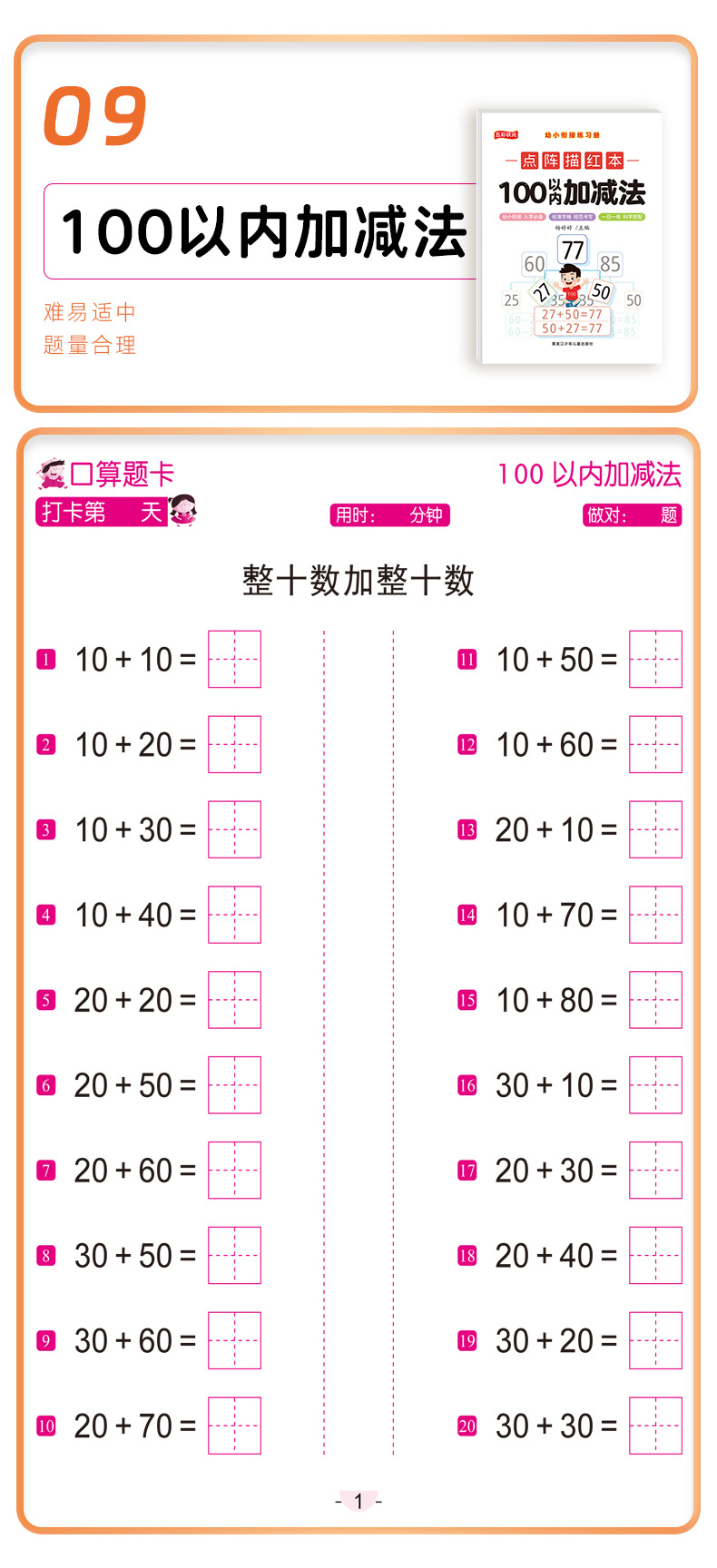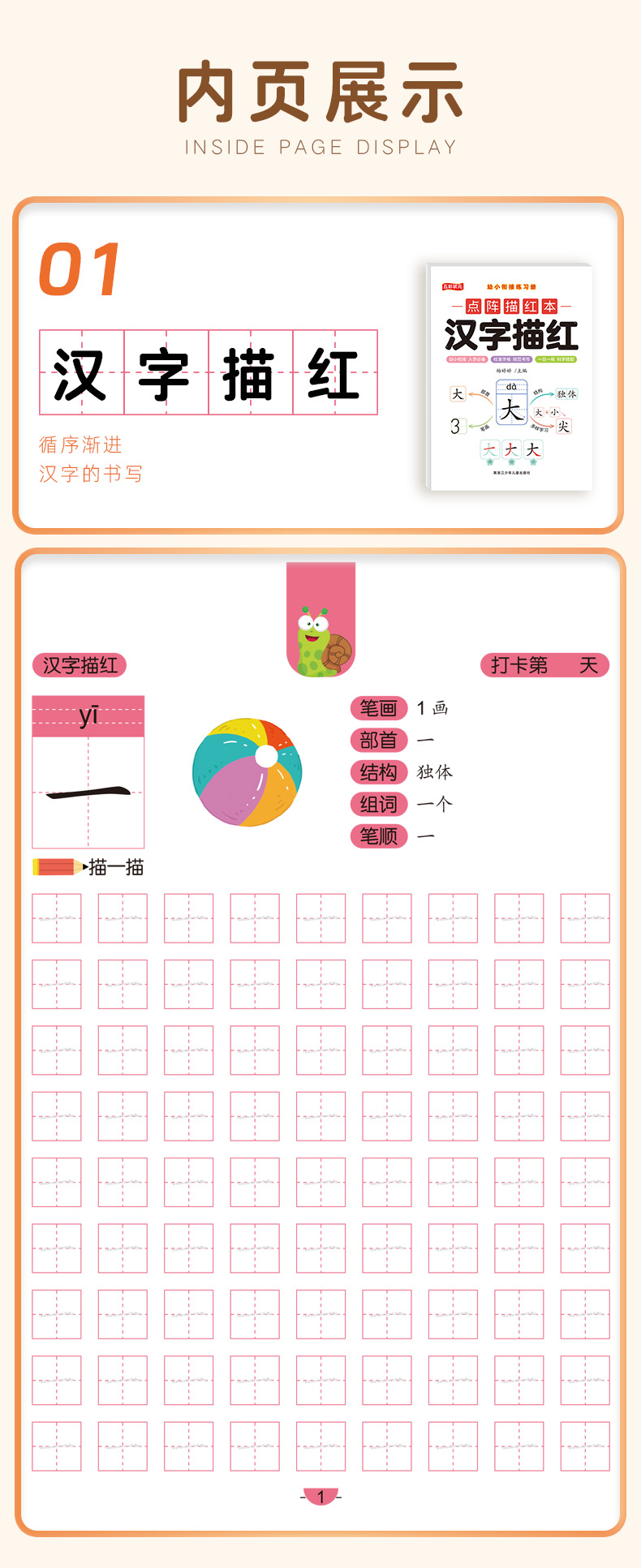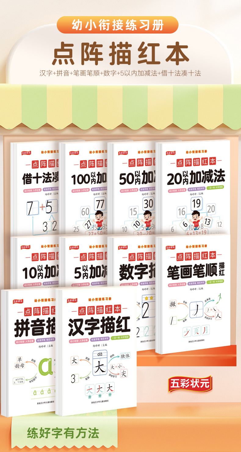 도트 매트릭스 추적 빨간색이 유치원 중소 및 대형 수업은 5/10/20/50/100 이내에 디지털 병음 스트로크를 추가하고 뺍니다.
