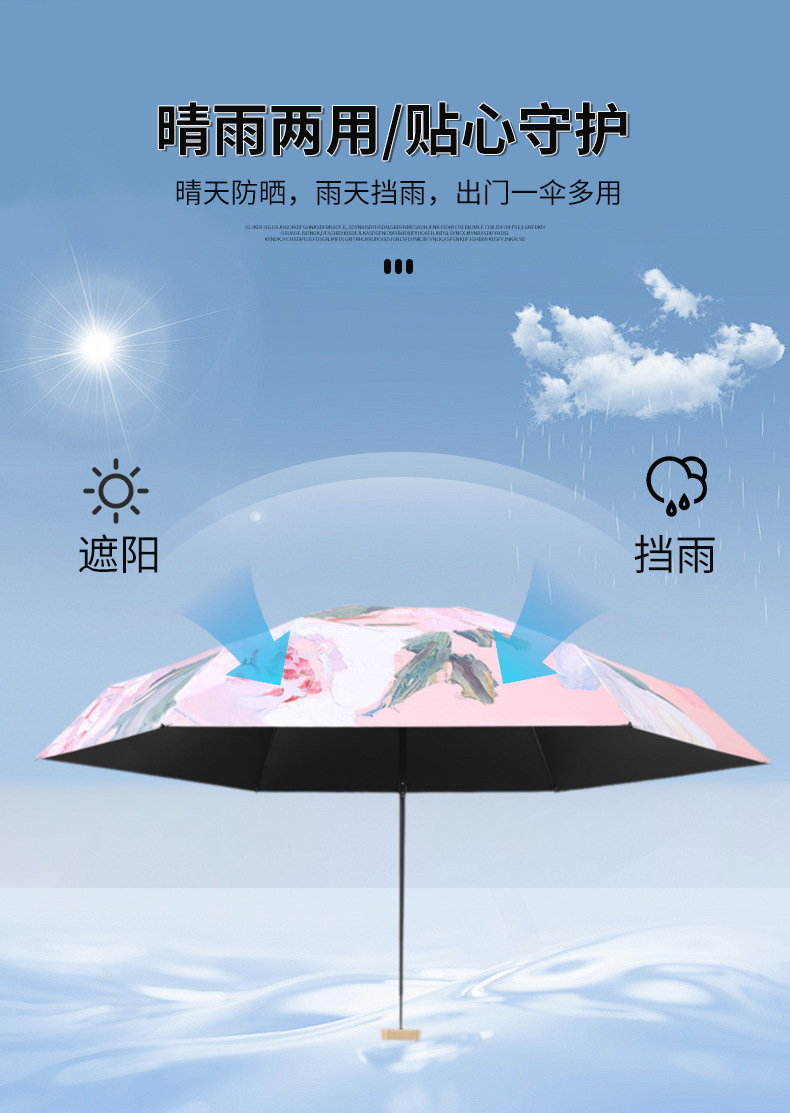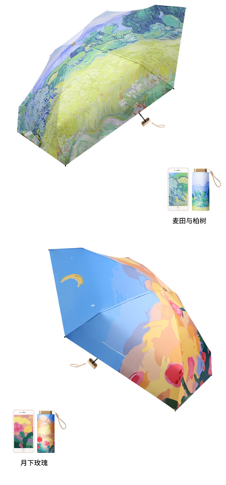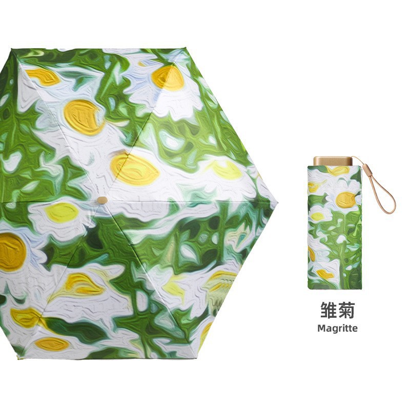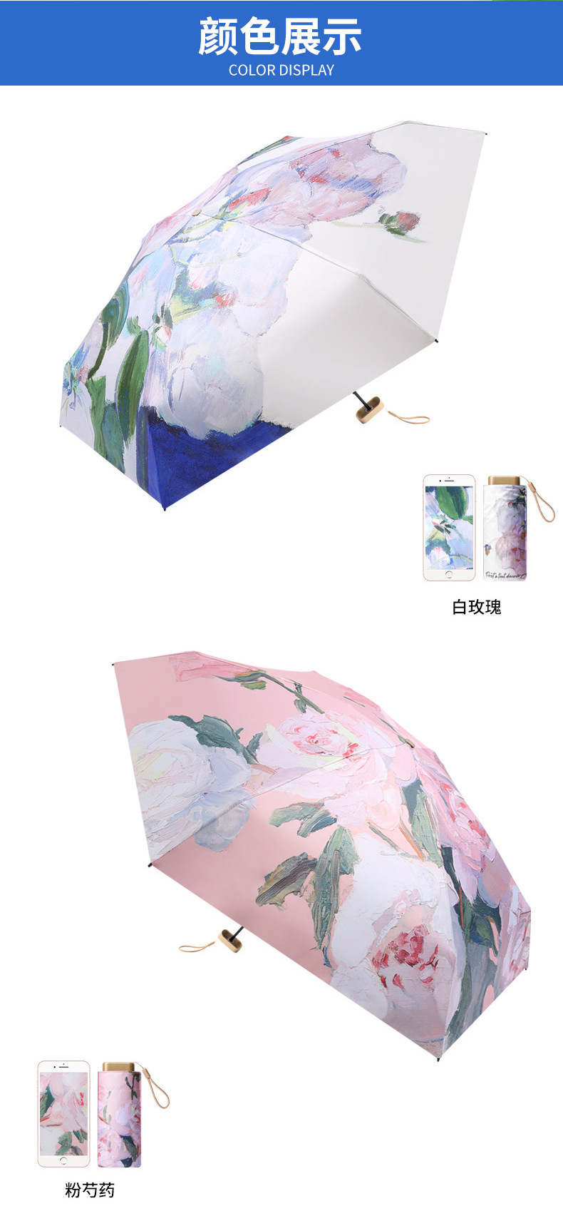 새로운 중국 l 더블 레이어 더블 꽃 태양 우산 여성 일러스트 손으로 그린 바람 콤팩트하고 편리한 이중 목적 우산 미니 60% 할인