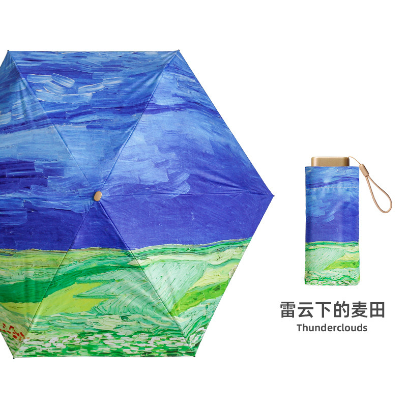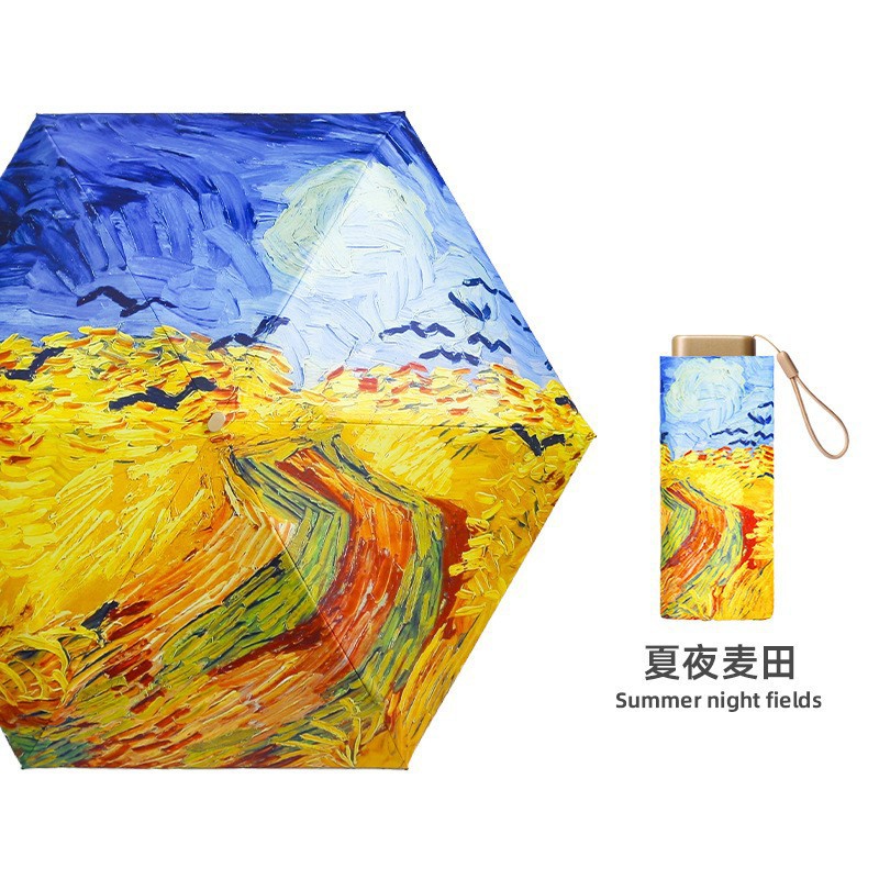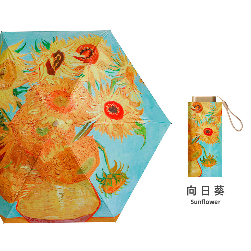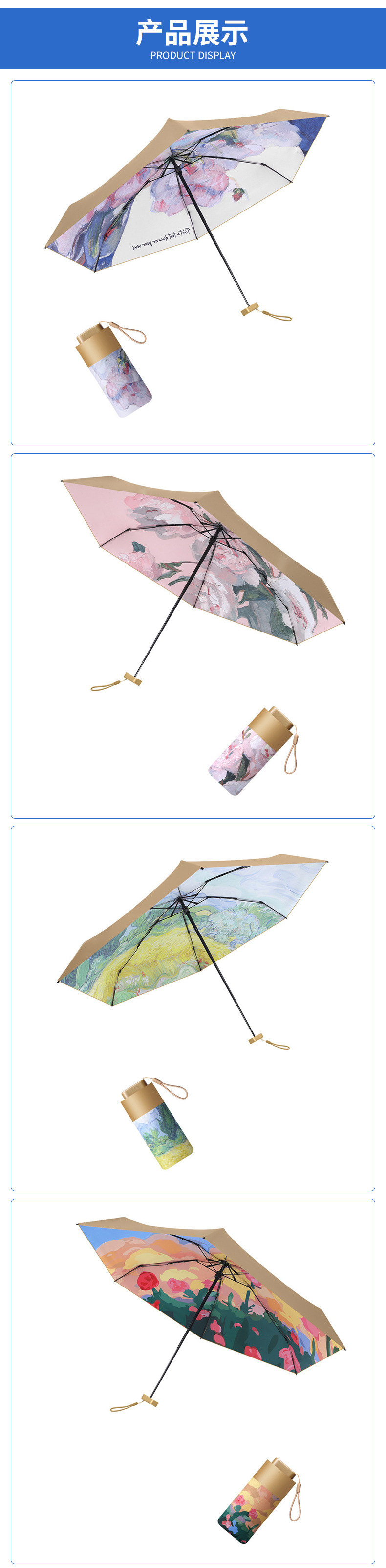 새로운 중국 l 더블 레이어 더블 꽃 태양 우산 여성 일러스트 손으로 그린 바람 콤팩트하고 편리한 이중 목적 우산 미니 60% 할인