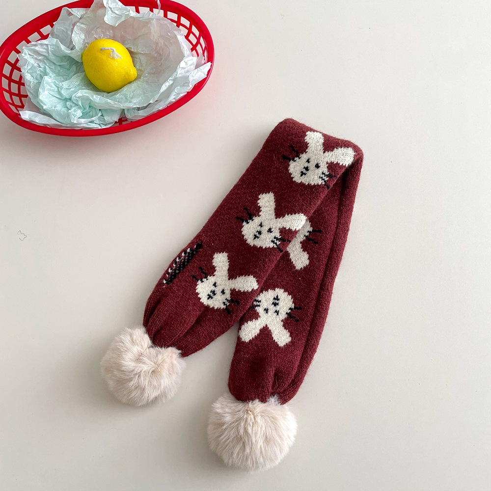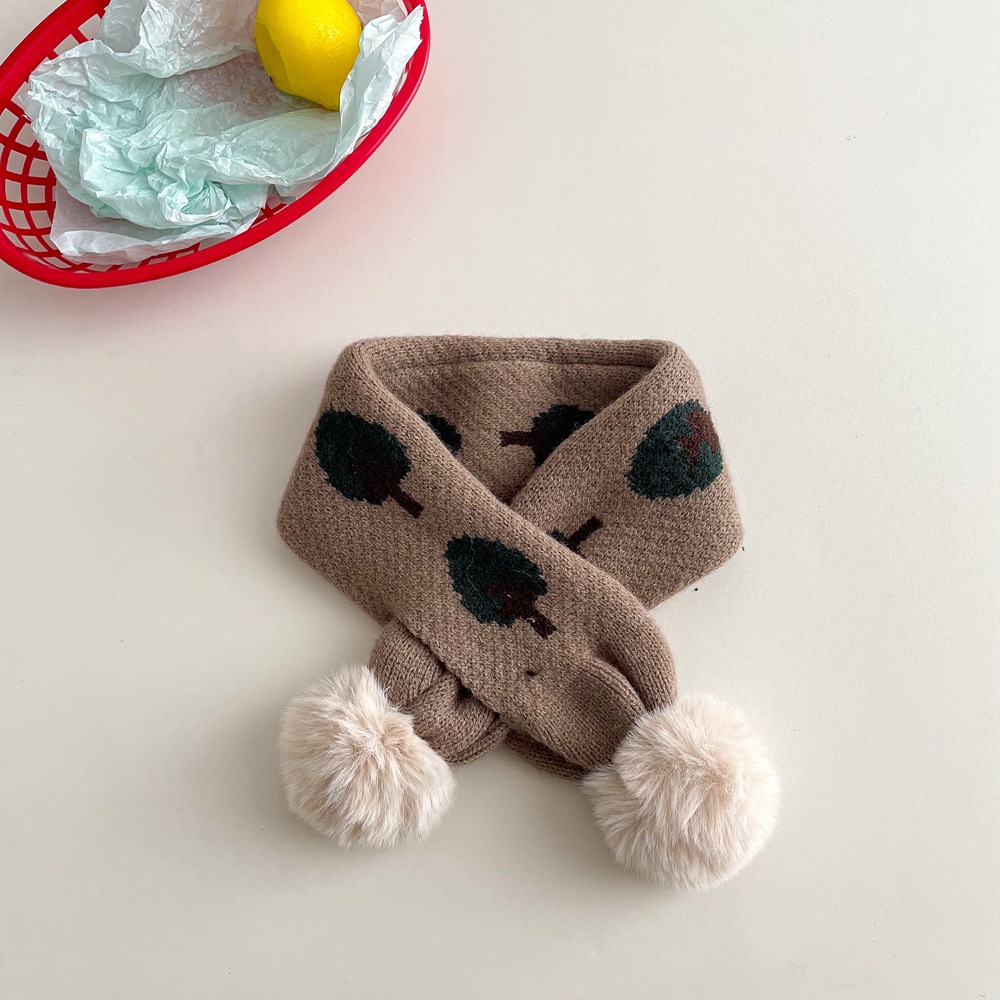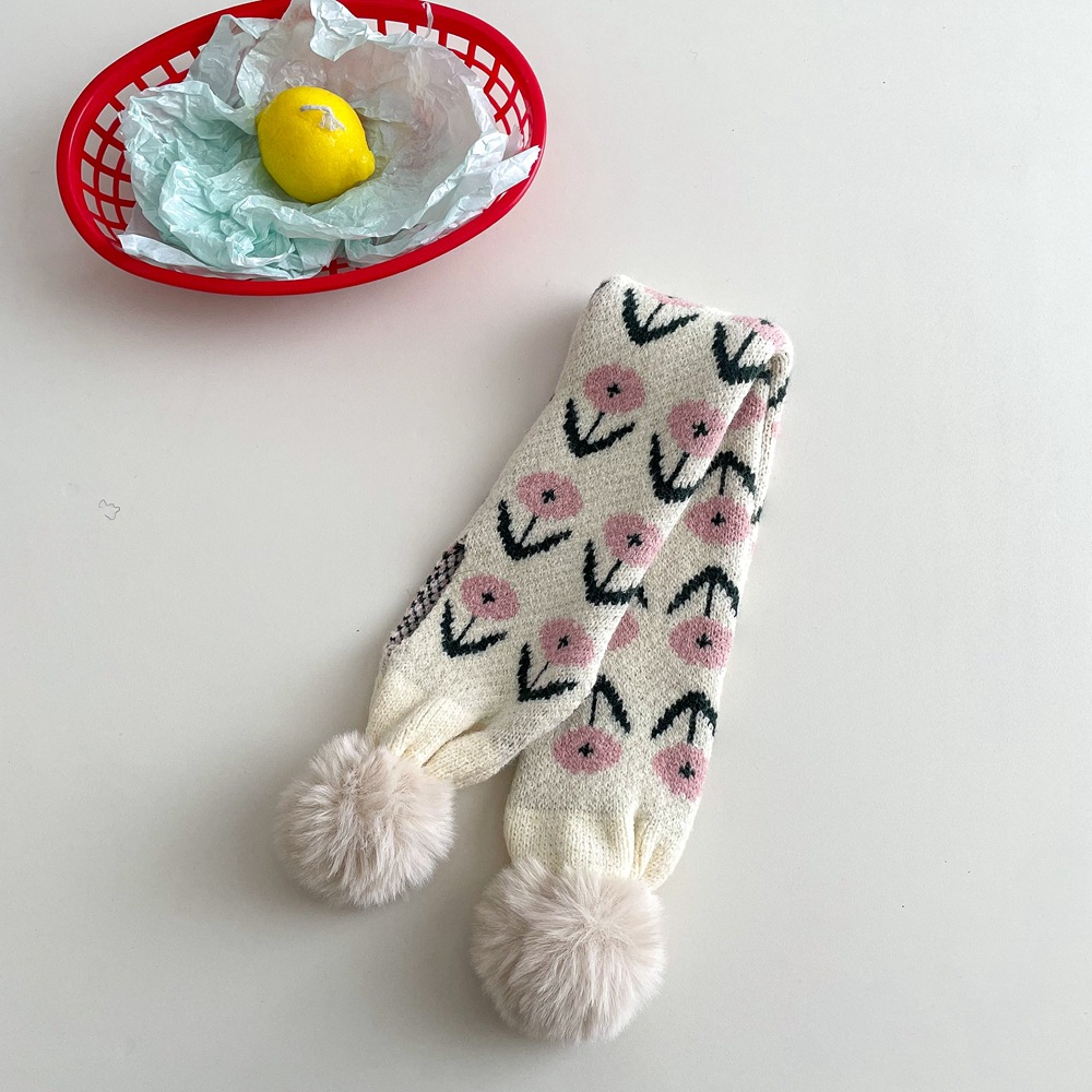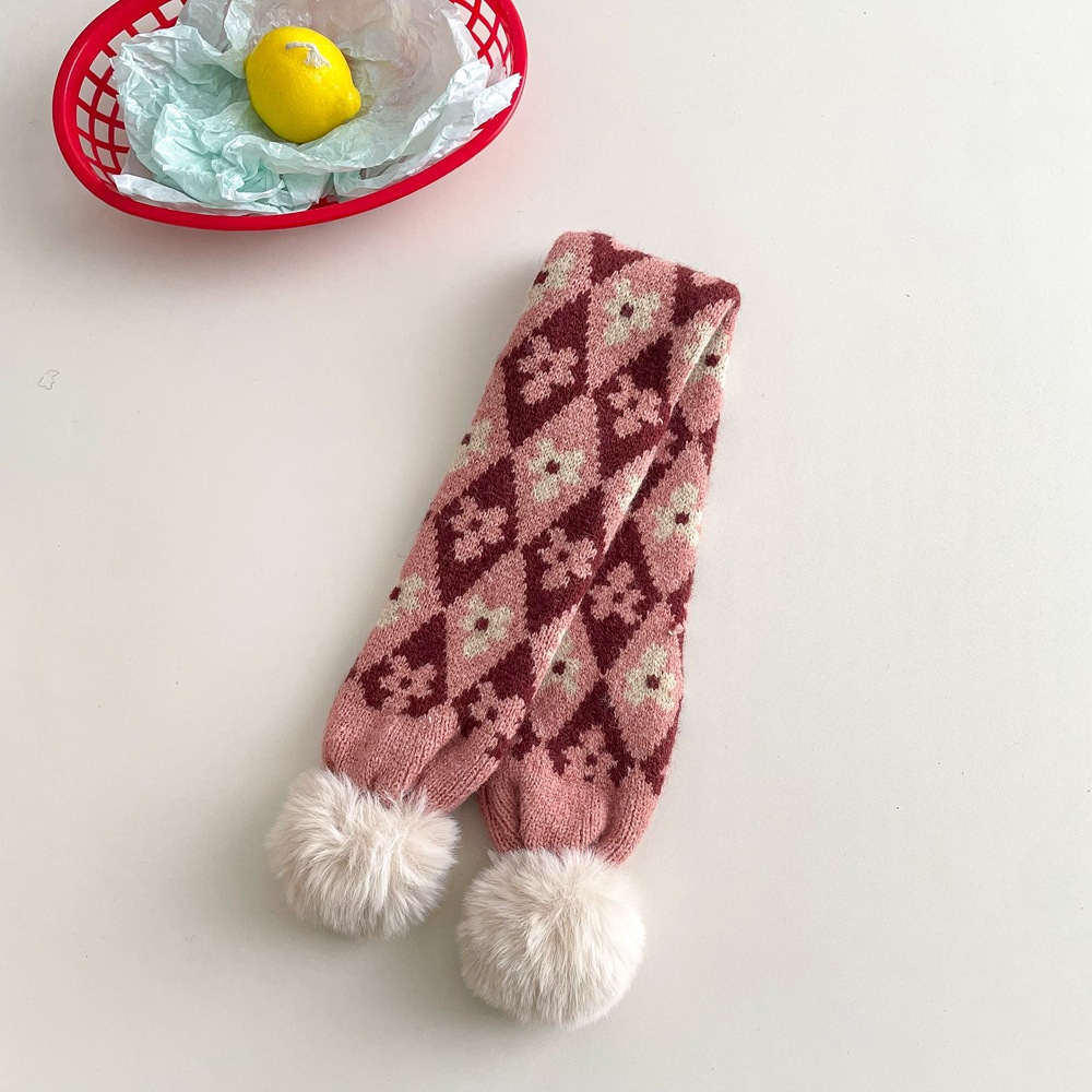 한국식 트렌디한 어린이 니트 스카프 복고풍 멀티 패턴 자카드 크로스 스카프 따뜻한 소년 · 여아 스카프