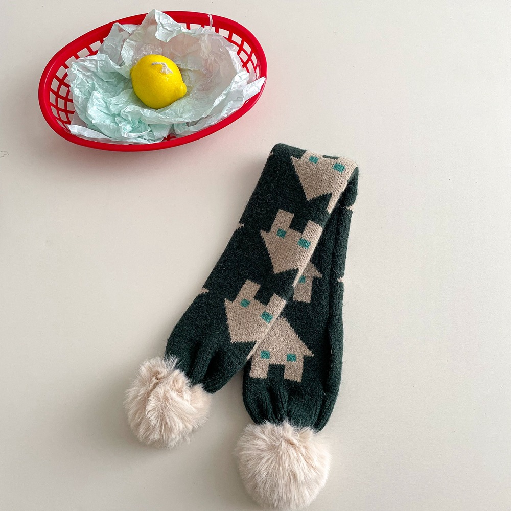 한국식 트렌디한 어린이 니트 스카프 복고풍 멀티 패턴 자카드 크로스 스카프 따뜻한 소년 · 여아 스카프스토어 가기