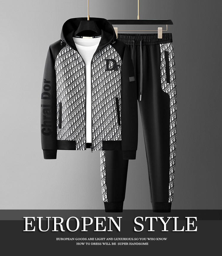 유럽 스타일 남성복 2025 봄 가을 신상 남성 후드티 세트 패션 트렌드 스포츠 캐주얼 투피스 세트스토어 가기