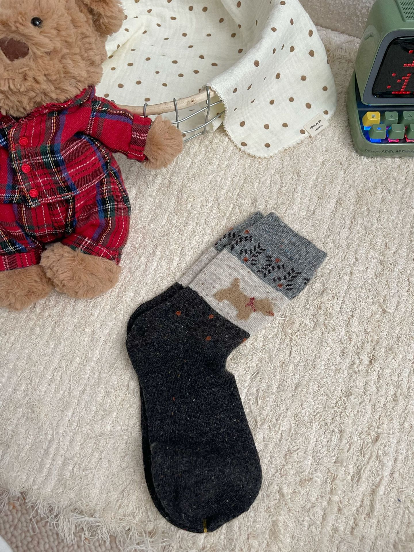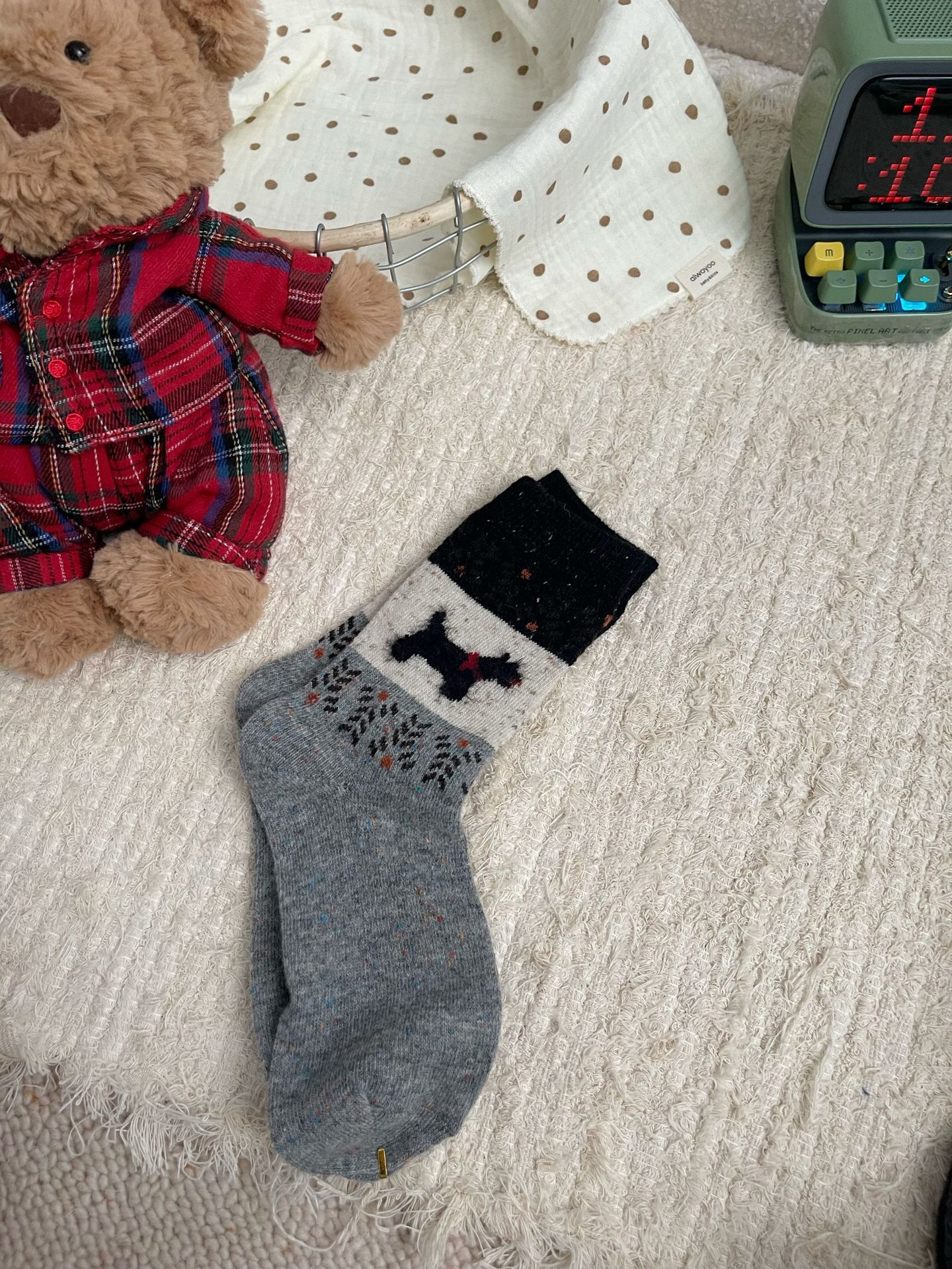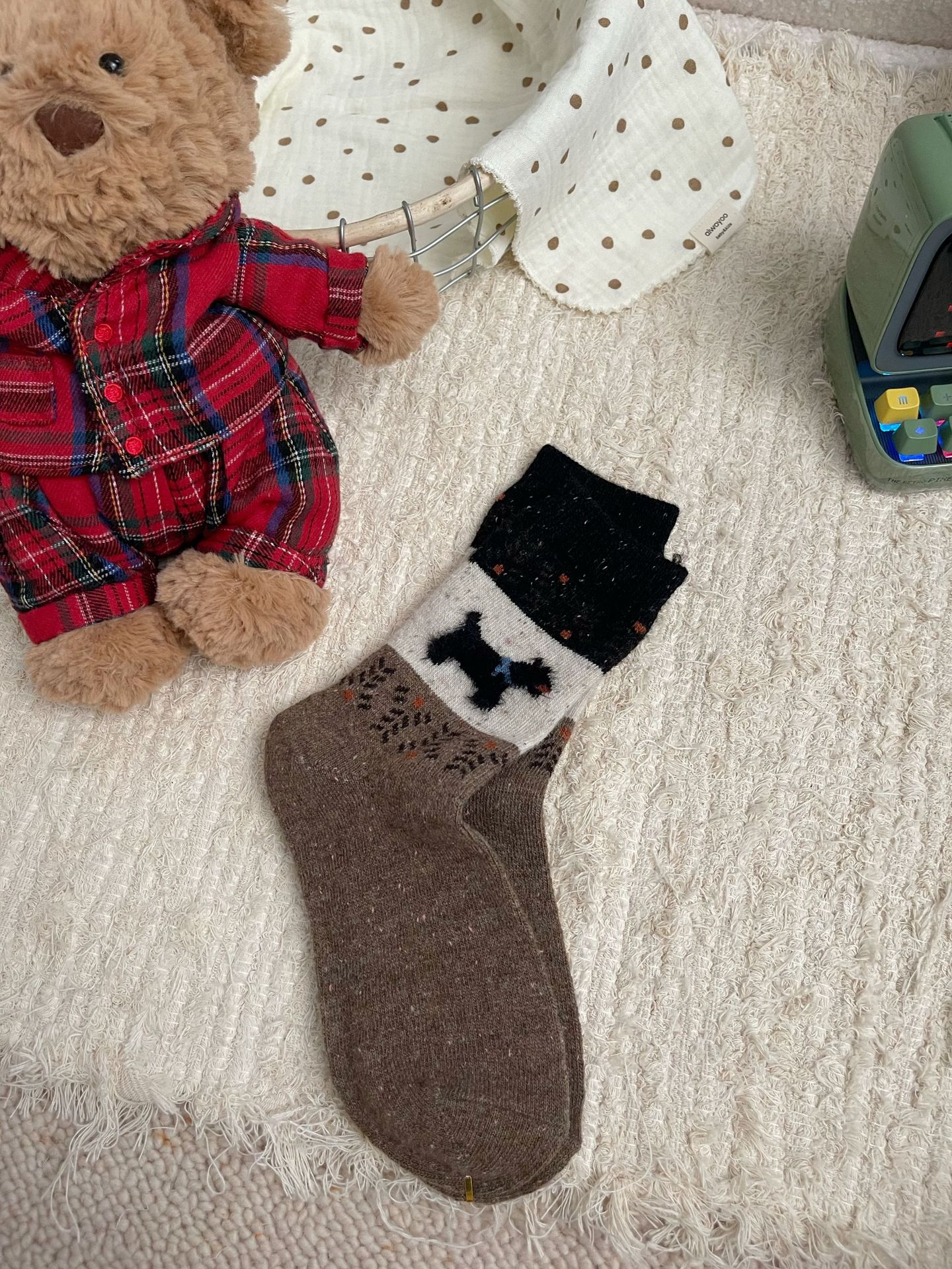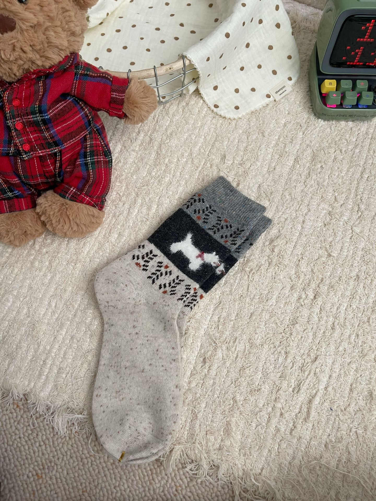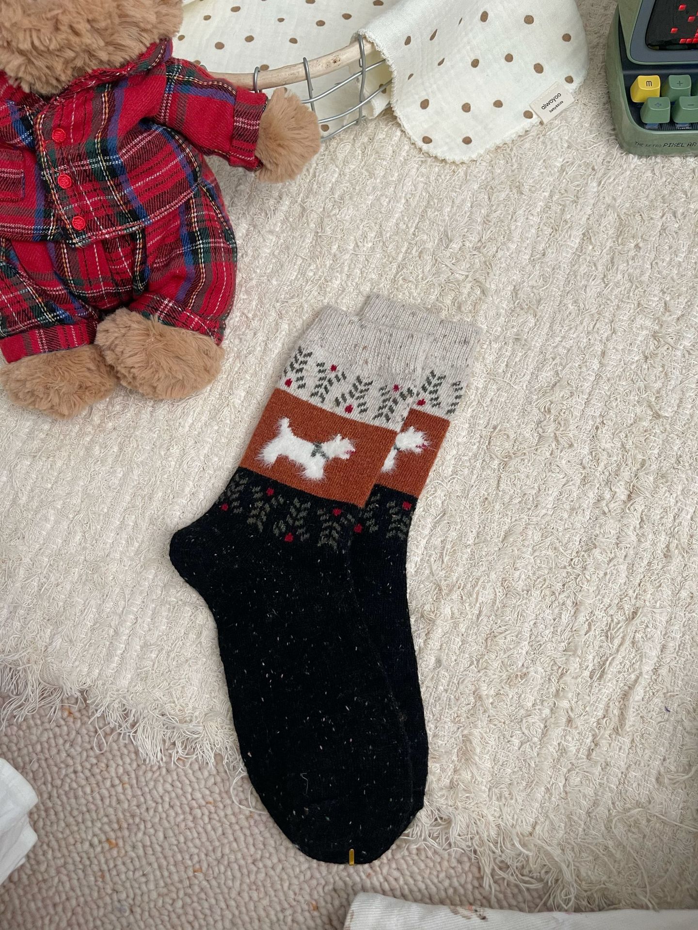일본식 빈티지 울 양말 핀 포인트 원사 강아지 크리스마스 분위기 한국식 여성용 양말