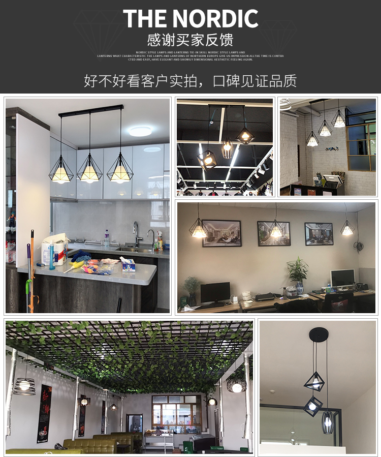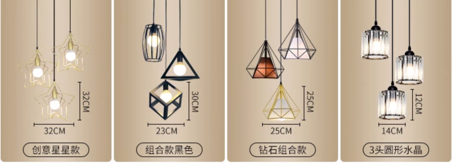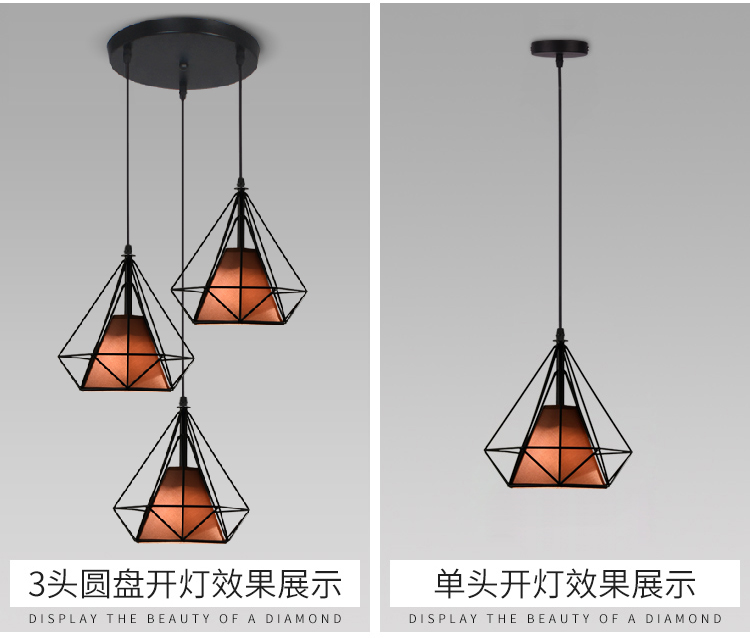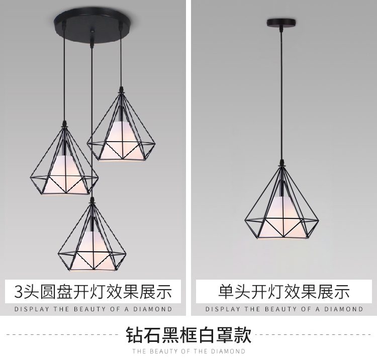 북유럽 현대 간단한 바 조명 레스토랑 샹들리에 3 다이아몬드 멀리 산업 스타일 개인화 된 창조적 인 조명