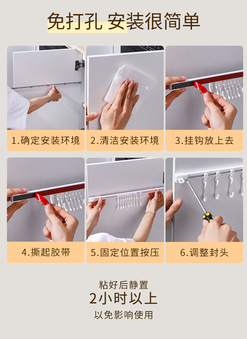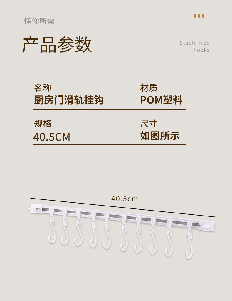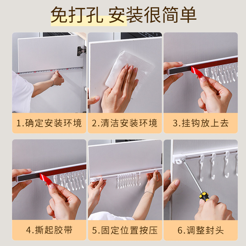 레일 벽 후크 캐비닛 후크 주방 행 후크 슬라이딩 S 후크 다기능 후크 펀칭 긴 행 후크