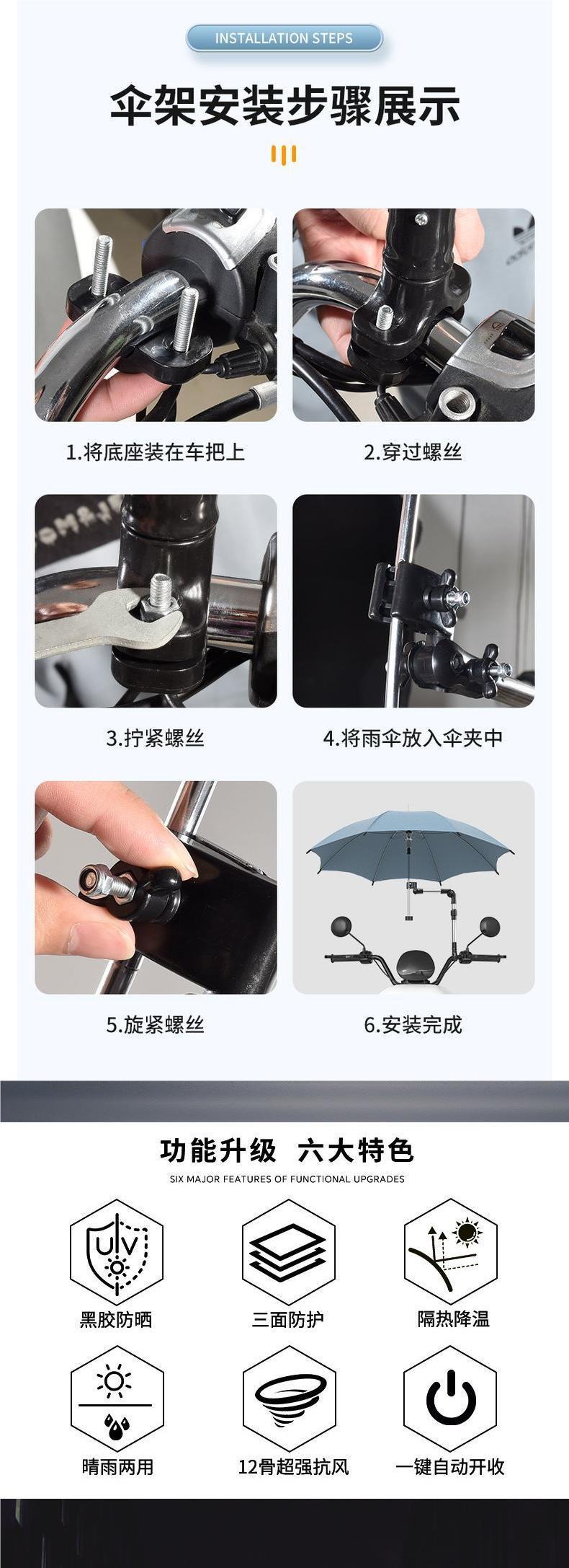 많은 수의 전기 자동차 우산 접이식 차양 선 스크린 강화 비바람 및 비 방지 이중 목적 배터리 자동차 편심 우산