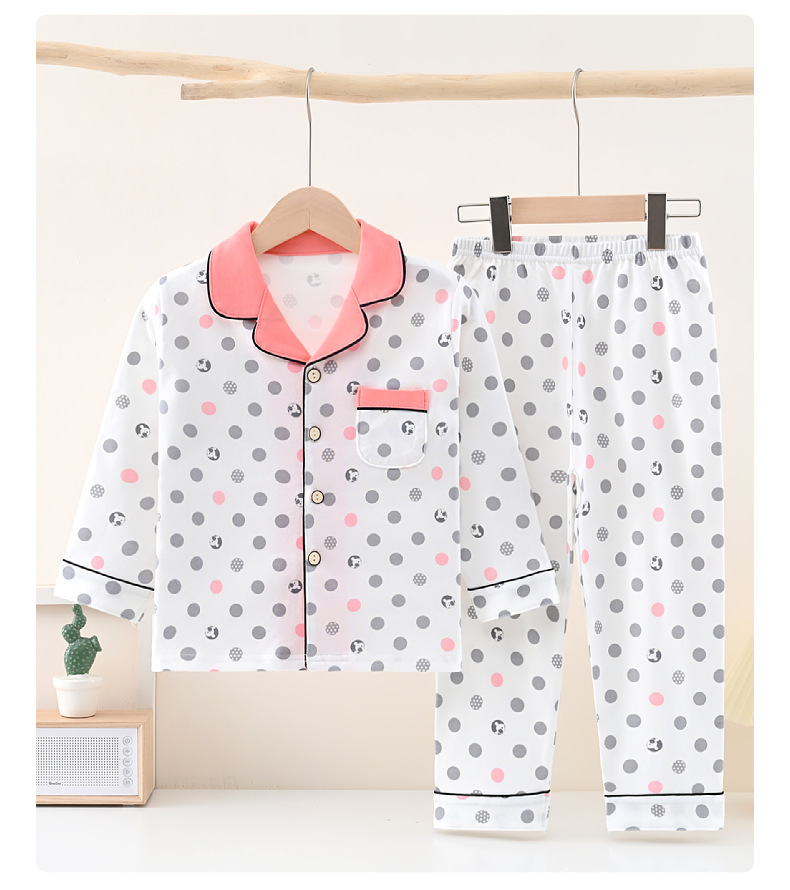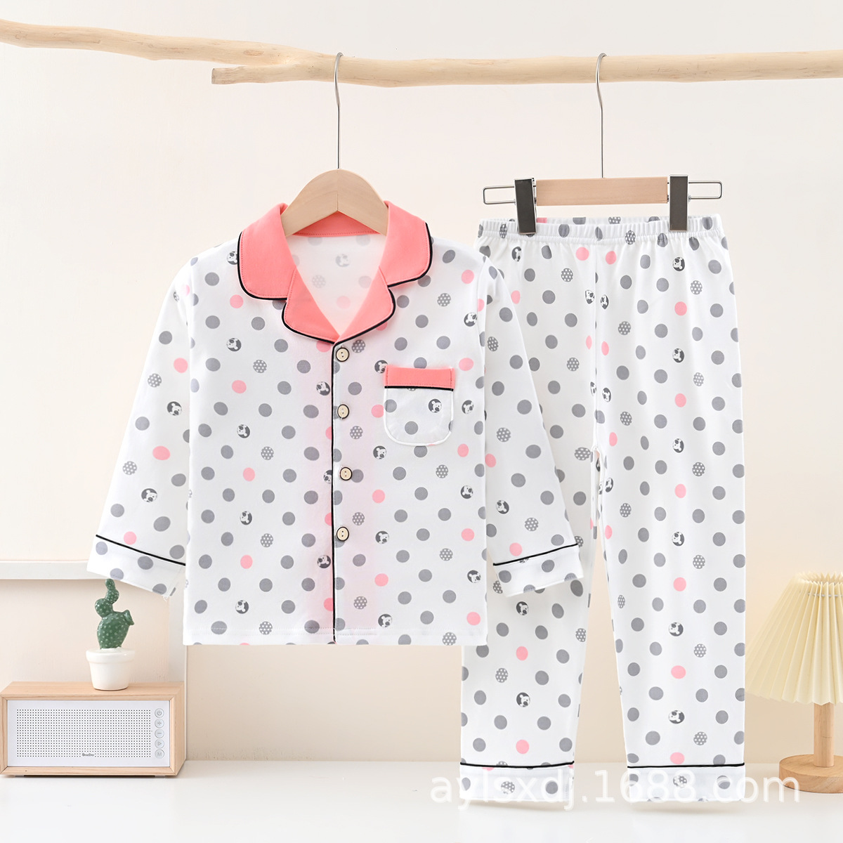 100 면 어린이 옷깃 파자마 대형 어린이 봄 · 가을 코튼 홈 옷 소년 · 소녀 긴 소매 속옷 세트