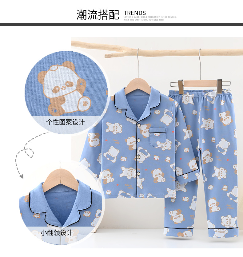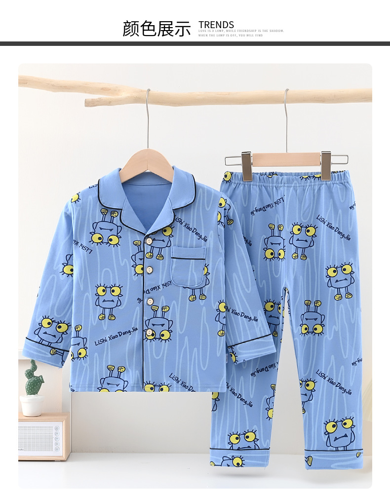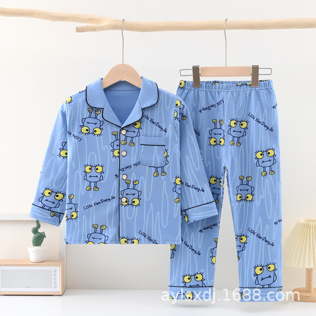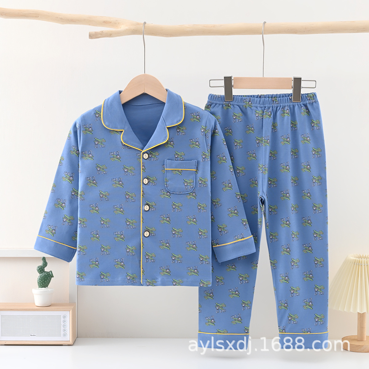 100 면 어린이 옷깃 파자마 대형 어린이 봄 · 가을 코튼 홈 옷 소년 · 소녀 긴 소매 속옷 세트스토어 가기